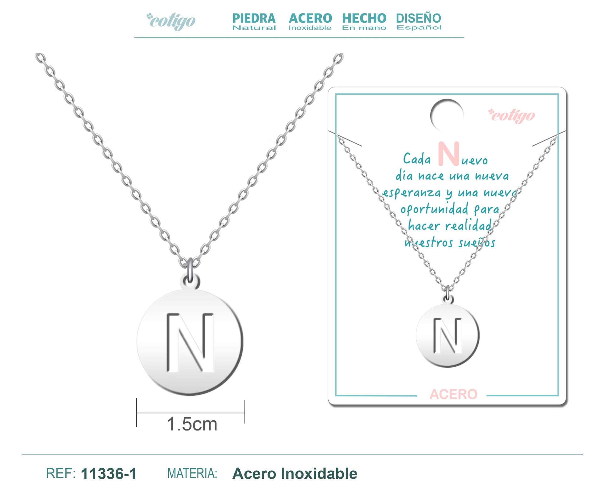 Colgante Redondo Acero letra-N