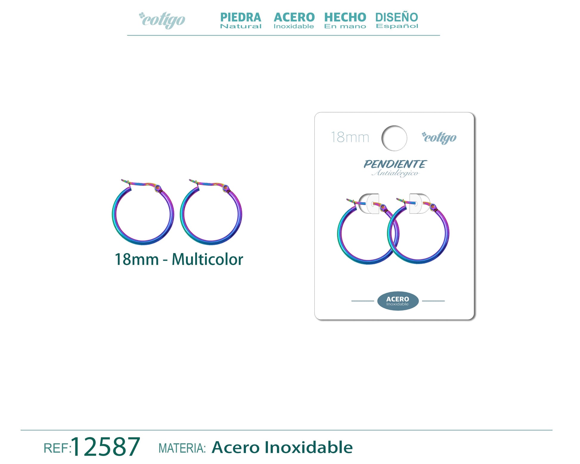 Pendiente Aro Acero-18mm Multicolor