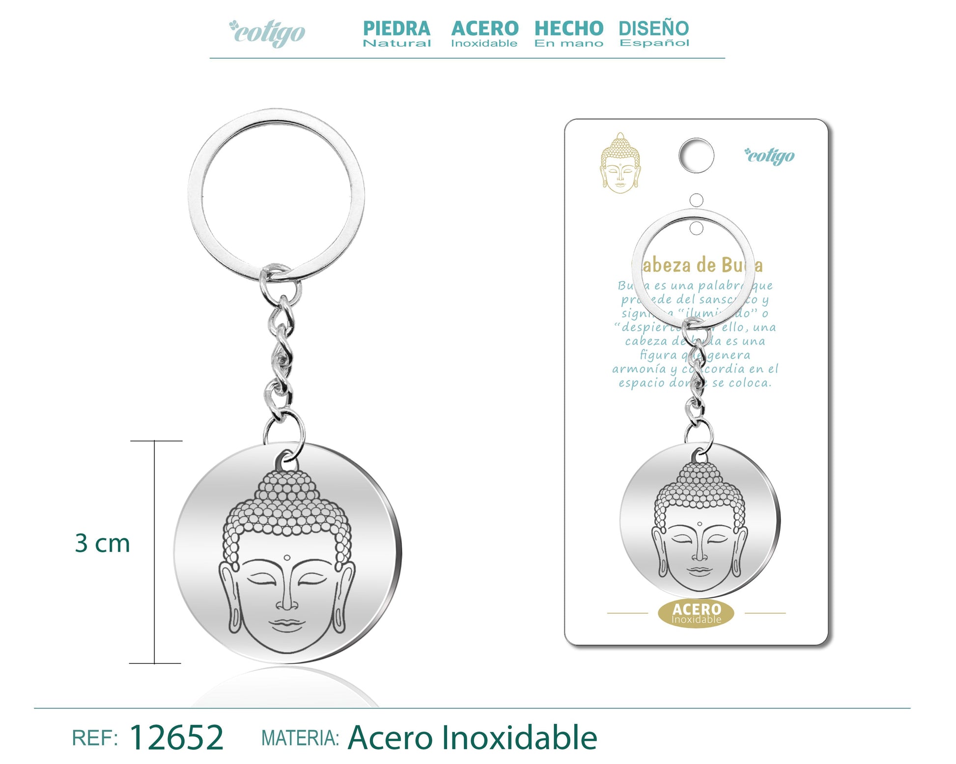 Llavero Acero con Simbolo Suerte Cabeza de Buda