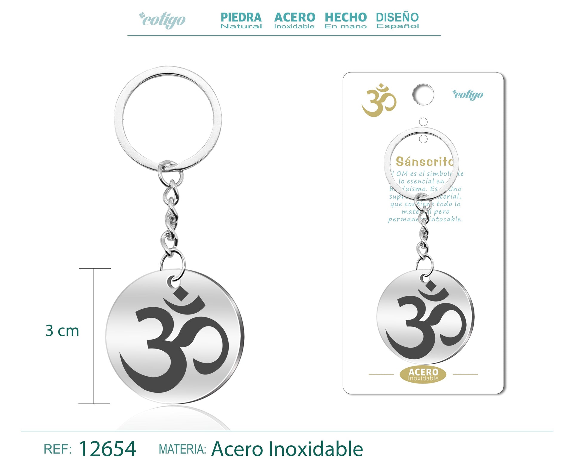 Llavero Acero de Simbolo Suerte Sánscrito