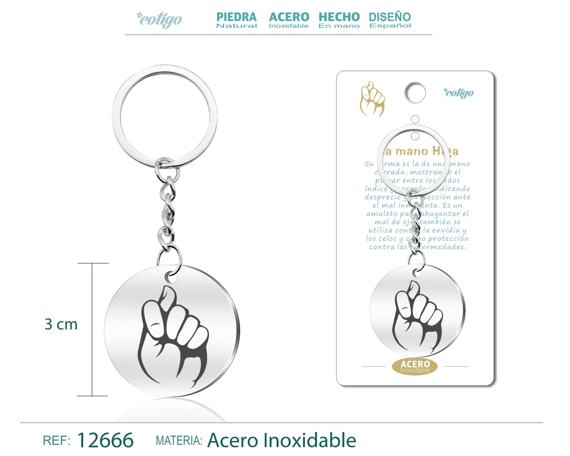 Llavero Acero de Simbolo Suerte Mano Higa