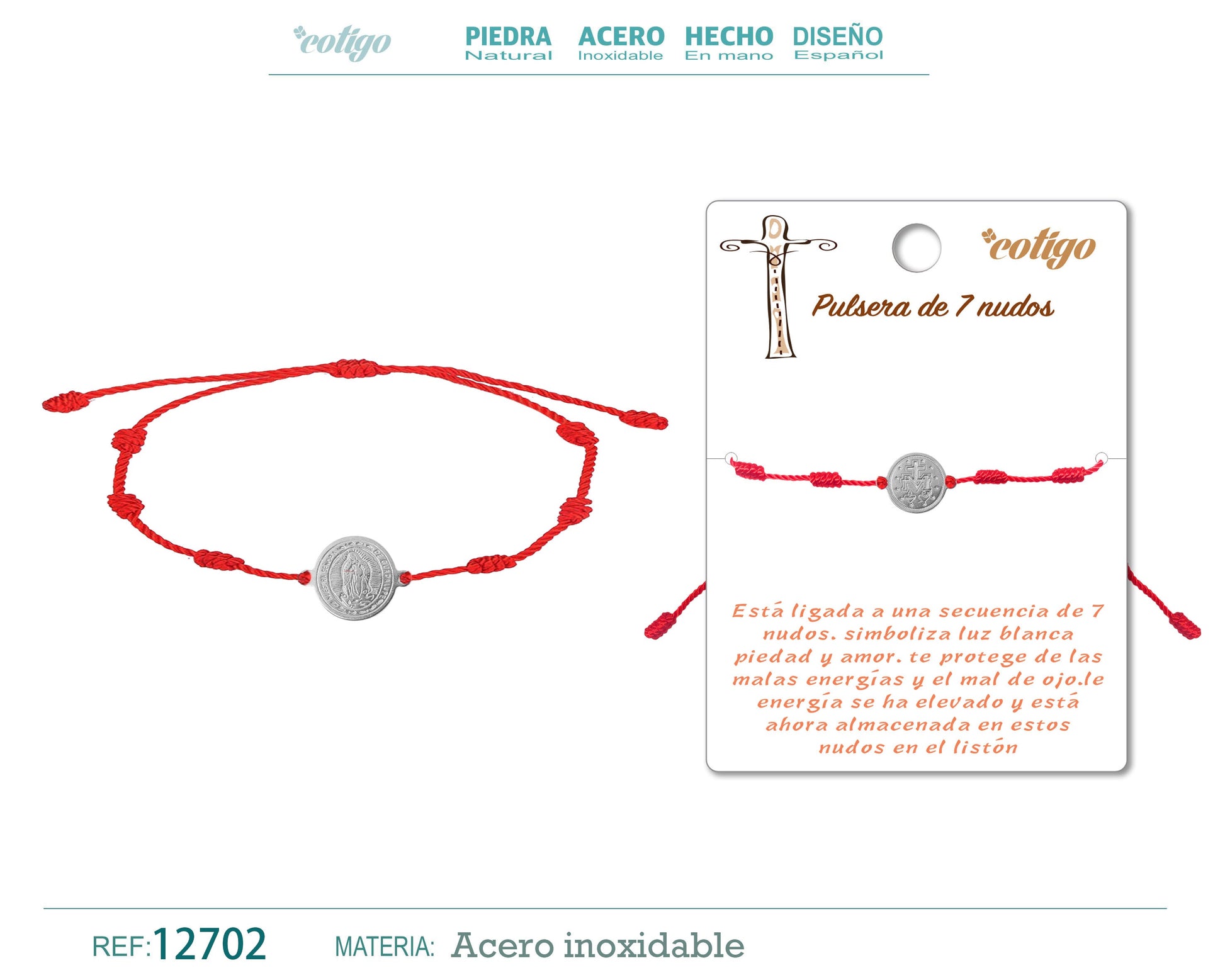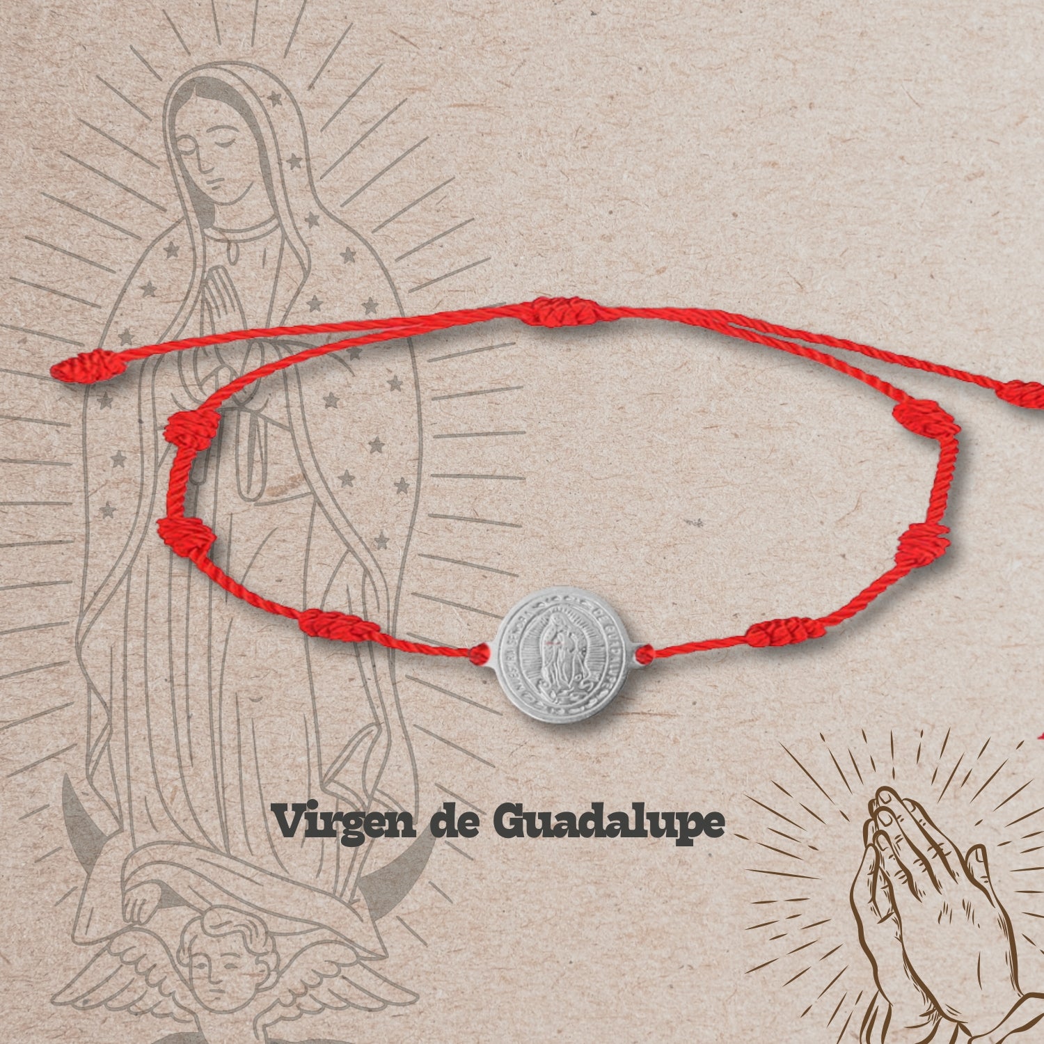 Pulsera 7 nudos con Virgen Guadalupe color Plateado
