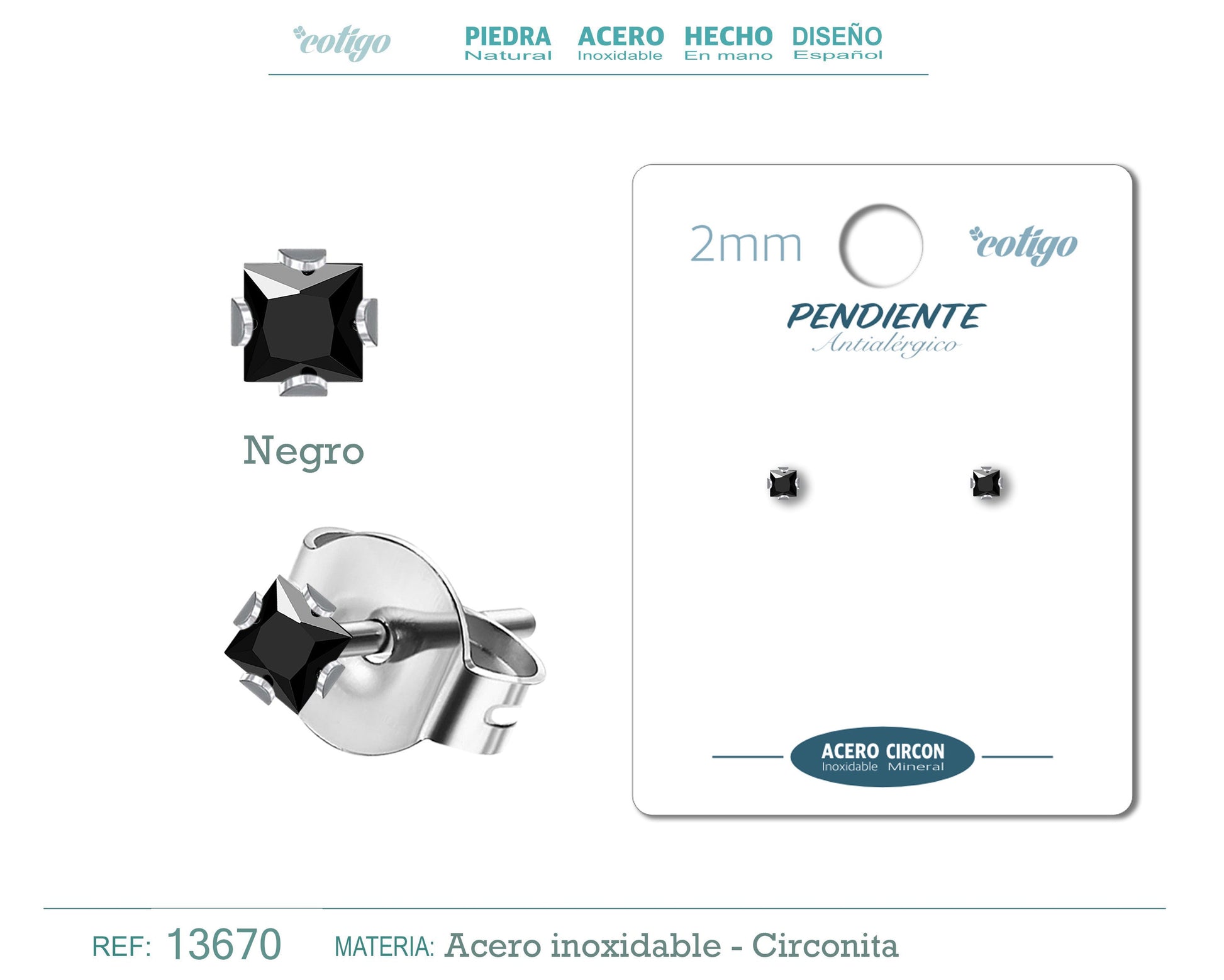 Pendiente Circonita Cuadrado-Negro-2mm-Base Acero Plateado