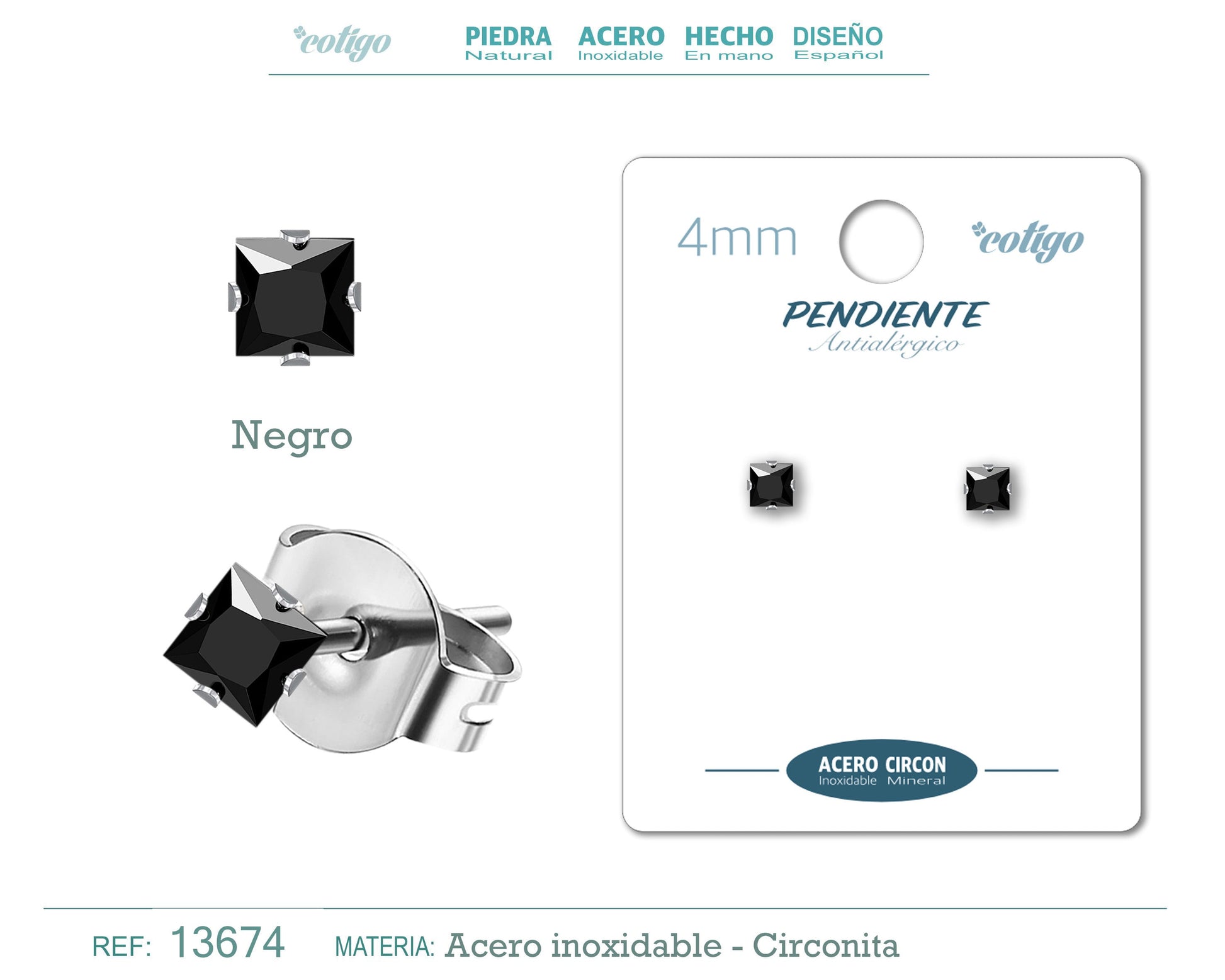 Pendiente Circonita Cuadrado-Negro-4mm-Base Acero Plateado
