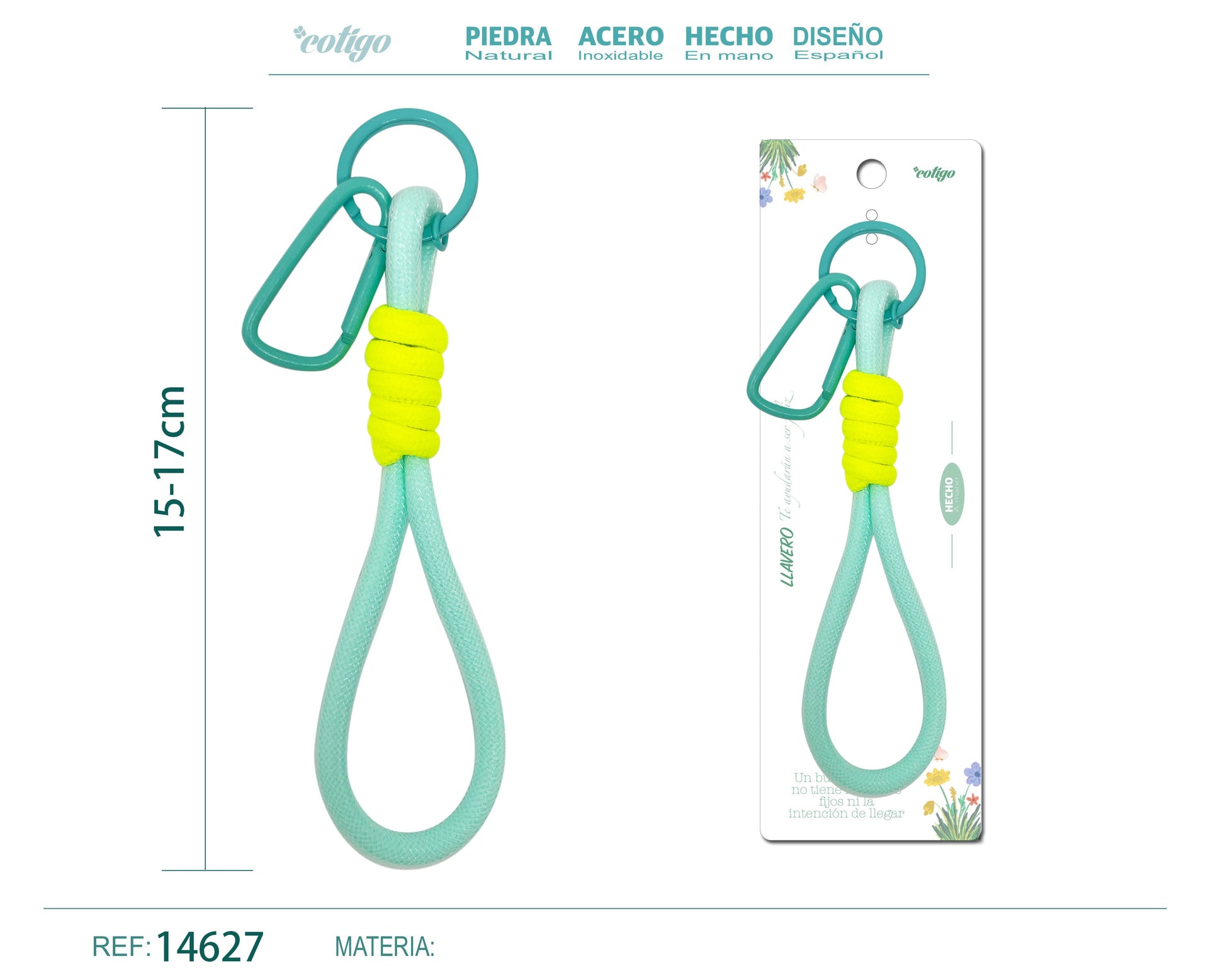 Llavero funcional elaborado en cuerda de alta calidad con acabado en tonalidad macarrón. Su diseño minimalista y resistente lo convierte en un accesorio versátil para llevar tus llaves organizadas sin añadir volumen. La cuerda trenzada garantiza durabilidad y comodidad al transportar, mientras que su color neutro combina con cualquier estilo. Perfecto como regalo o complemento personal que une practicidad y estética en una sola pieza.
