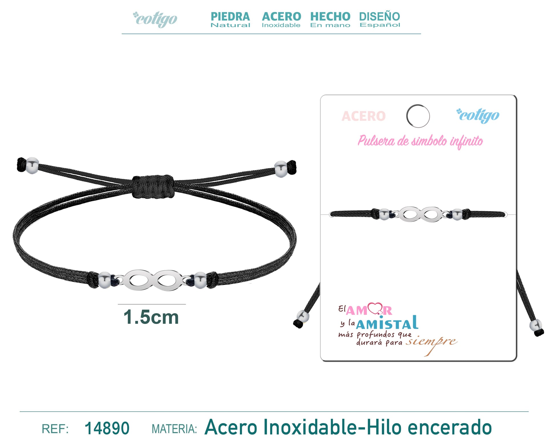 Pulsera Hilo encerado Negro-Infinito Plateado