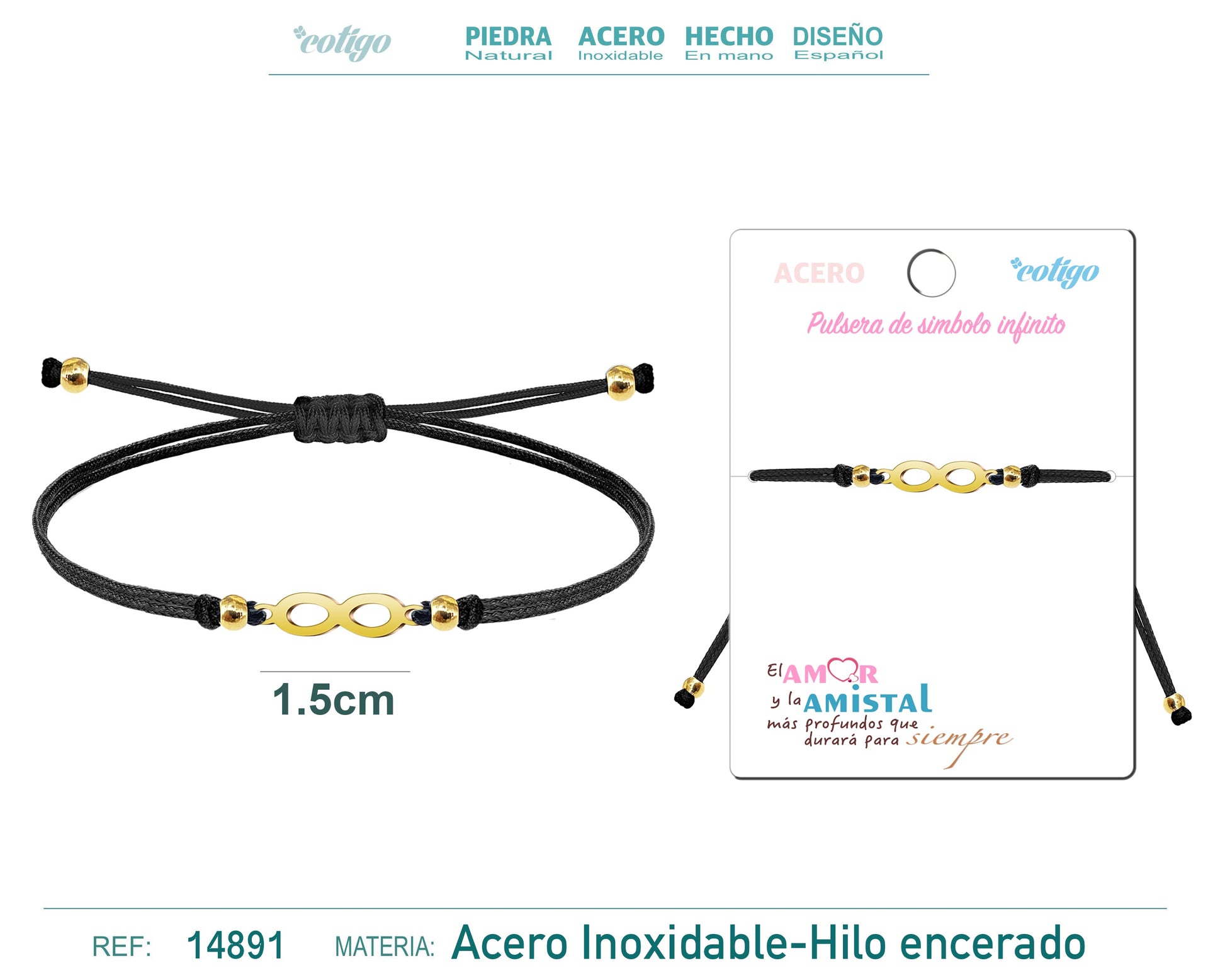 Pulsera Hilo encerado Negro-Infinito Dorado