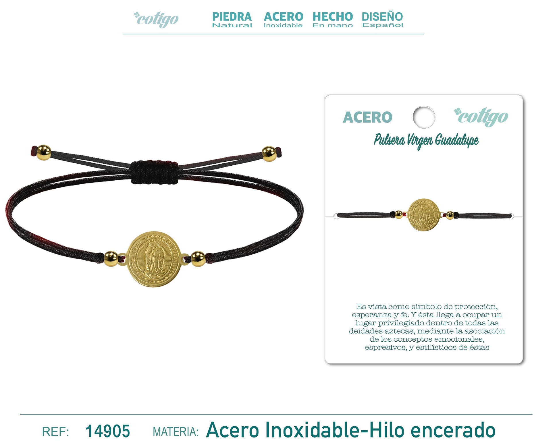 Pulsera Hilo encerado Negro-Virgen Guadalupe Dorado