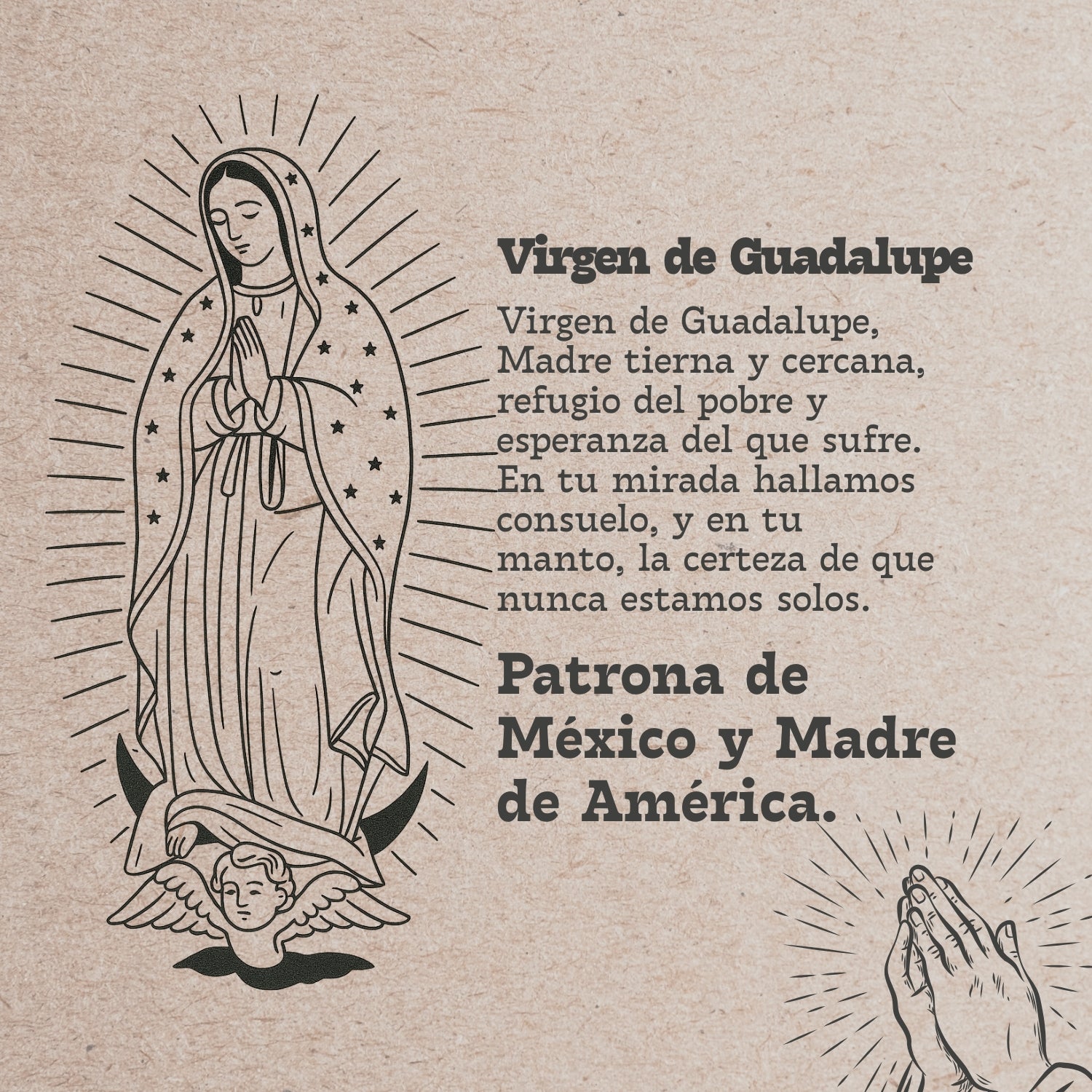 🌹 Virgen de Guadalupe, madre morena de amor y protección divina ✨. En tu manto florece la fe 💫 y en tu mirada brilla la esperanza 🕊️. Llévala contigo como guía, fuerza y consuelo del alma 💖🌿