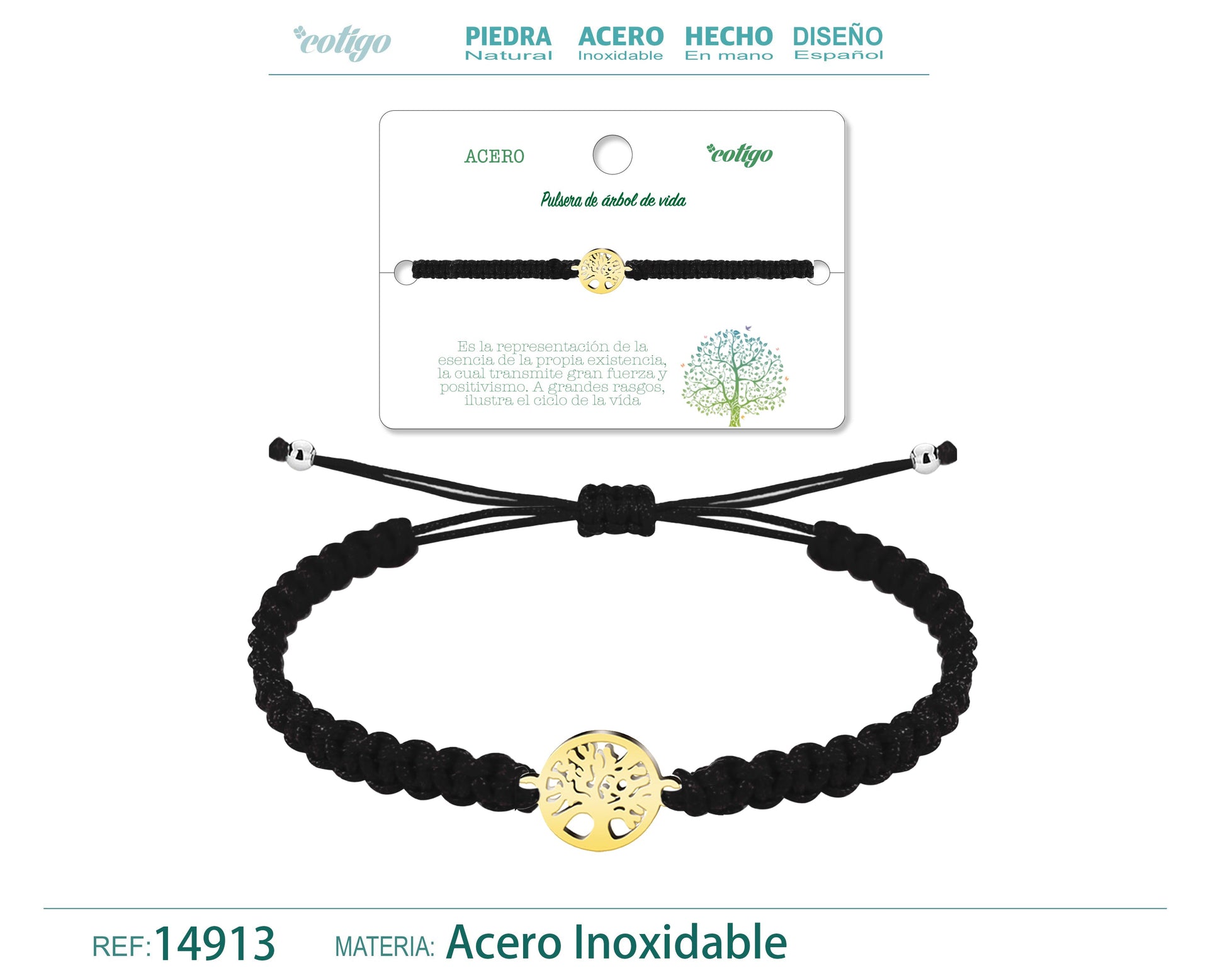 Pulsera Hilo trenzadoNegro-Arbol de Vida Dorado