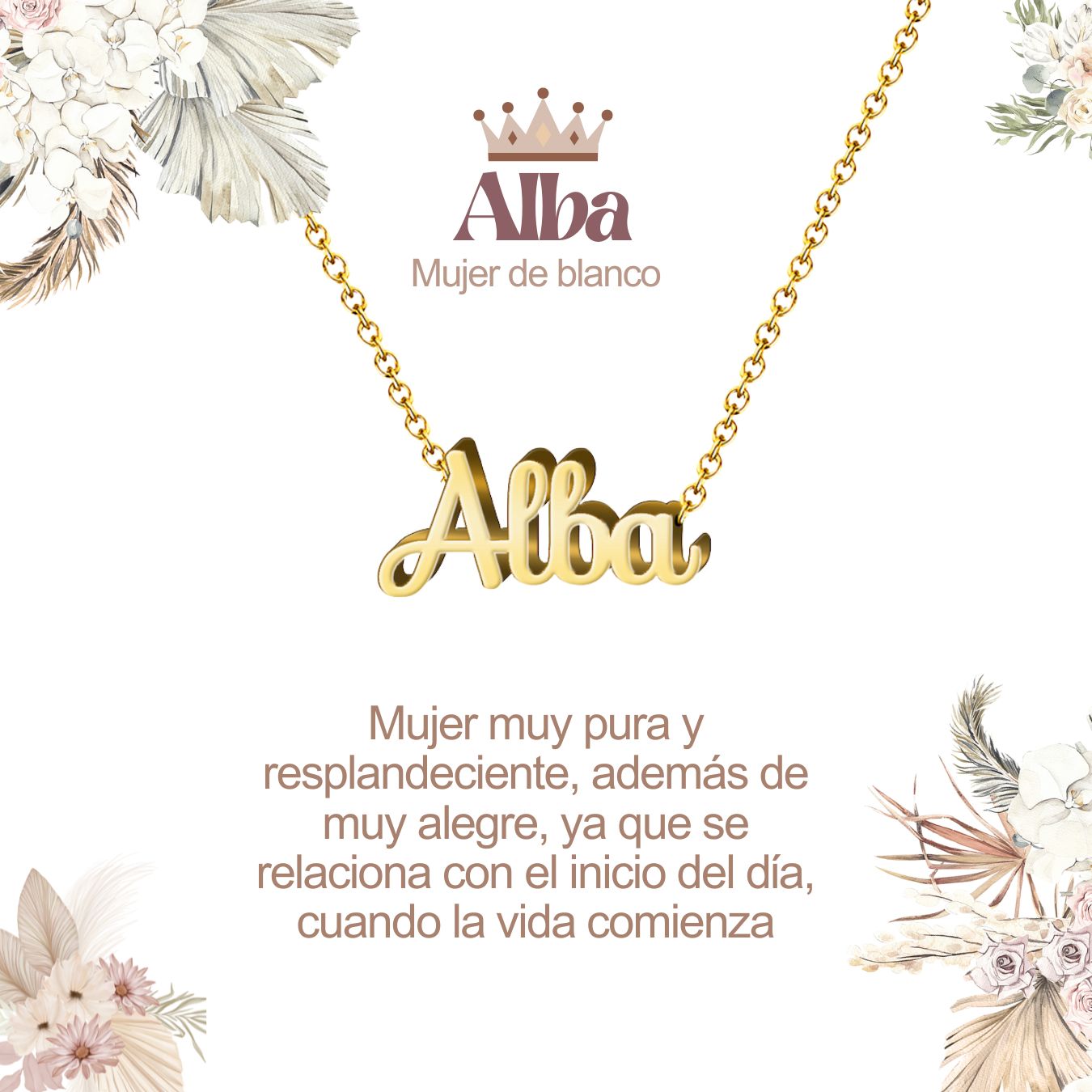 Inspirado en la belleza de los nombres femeninos en español, cada collar es una pieza única que refleja la personalidad y el encanto de quien lo lleva.
