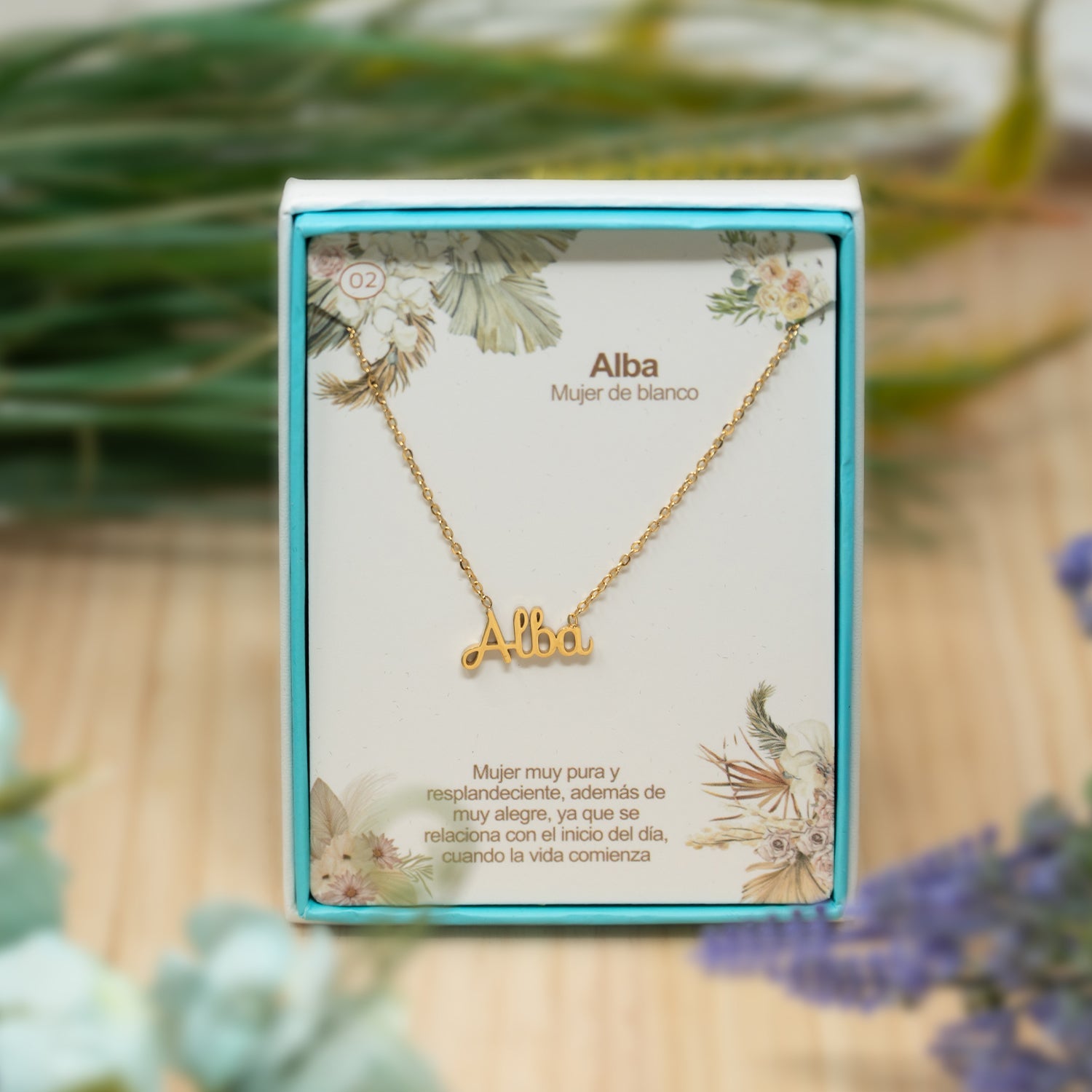 Incluye una tarjeta elegante con el significado especial de cada nombre, añadiendo un toque emocional y cultural a este regalo.