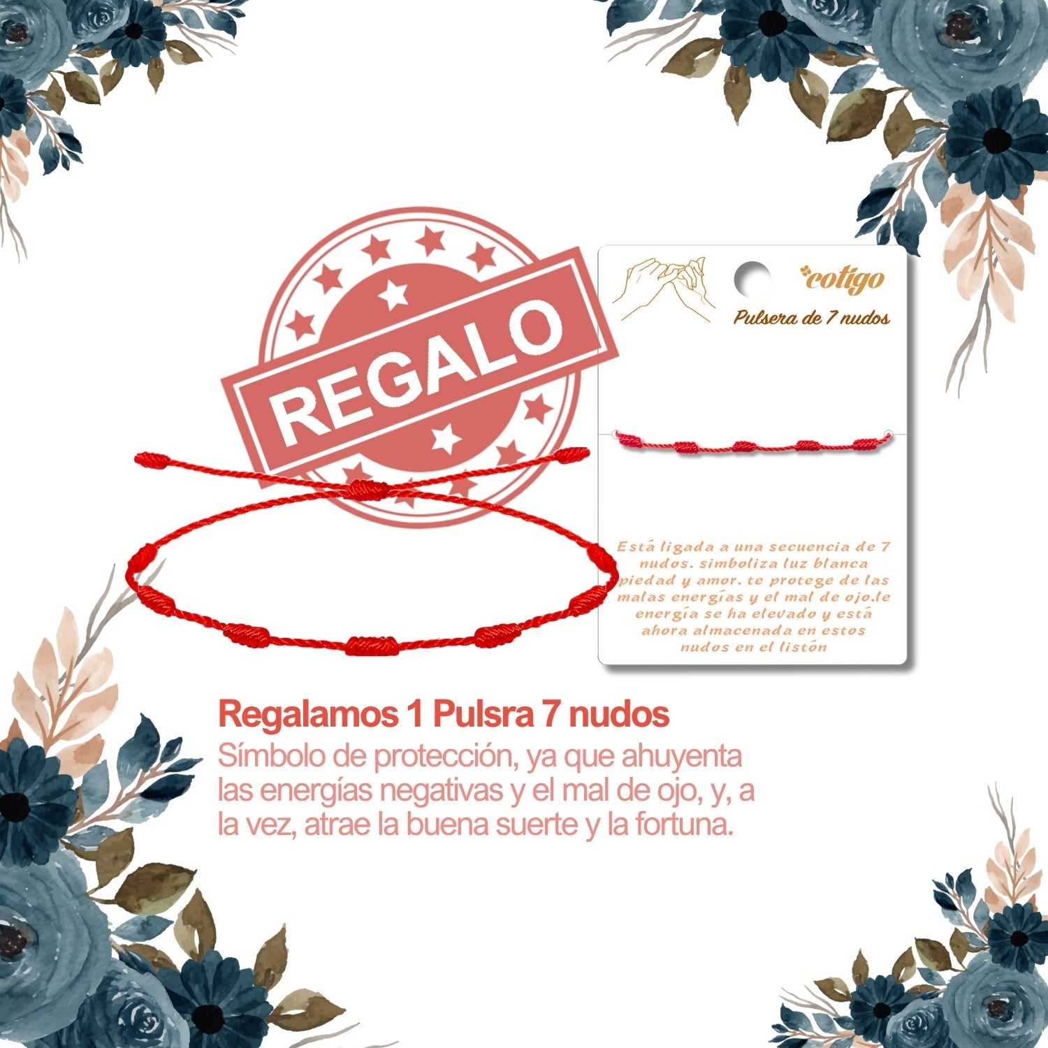 Como detalle especial, añadimos una pulsera de 7 nudos, símbolo de protección y buena suerte, para completar un obsequio lleno de significado.