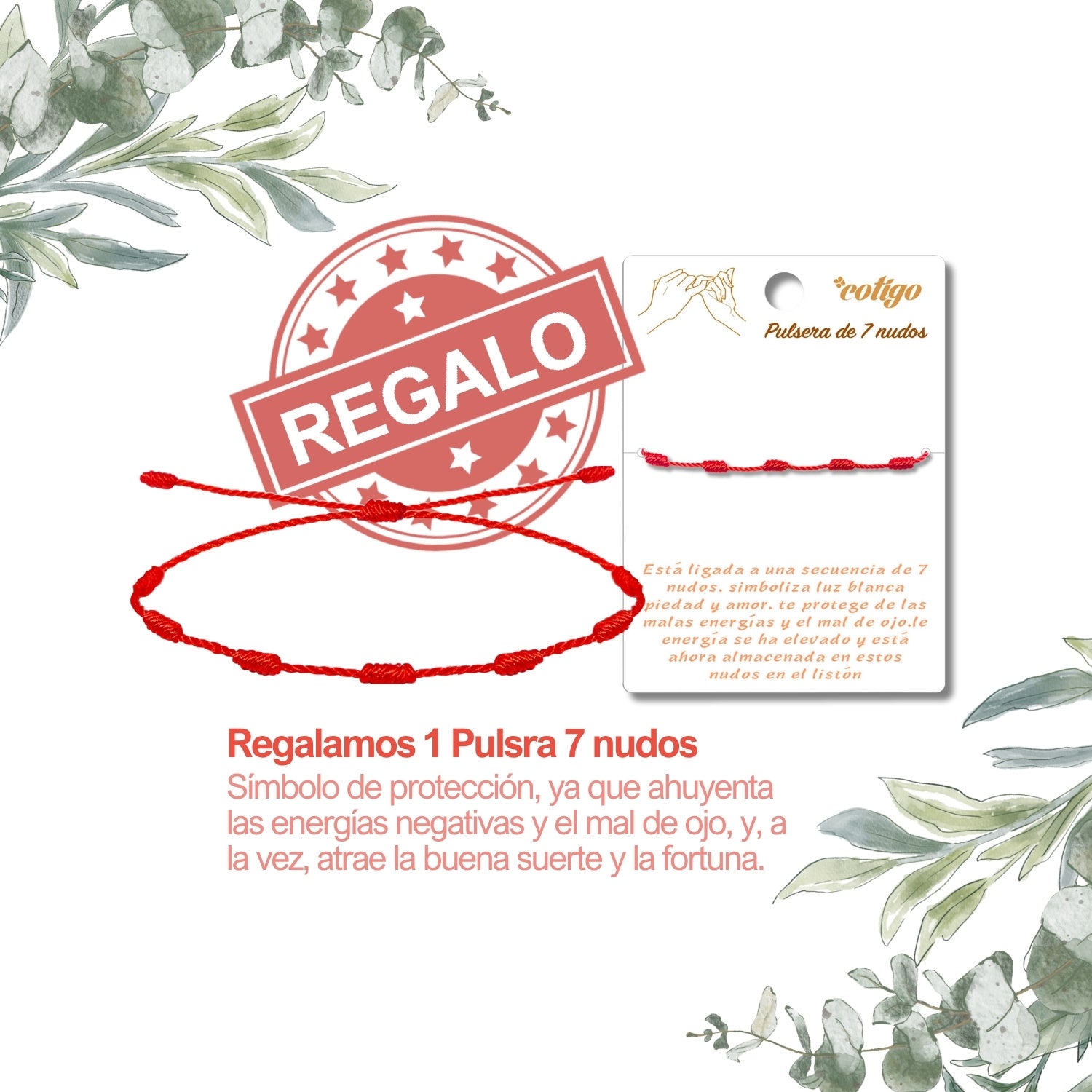 Como detalle especial, añadimos una pulsera de 7 nudos, símbolo de protección y buena suerte, para completar un obsequio lleno de significado.