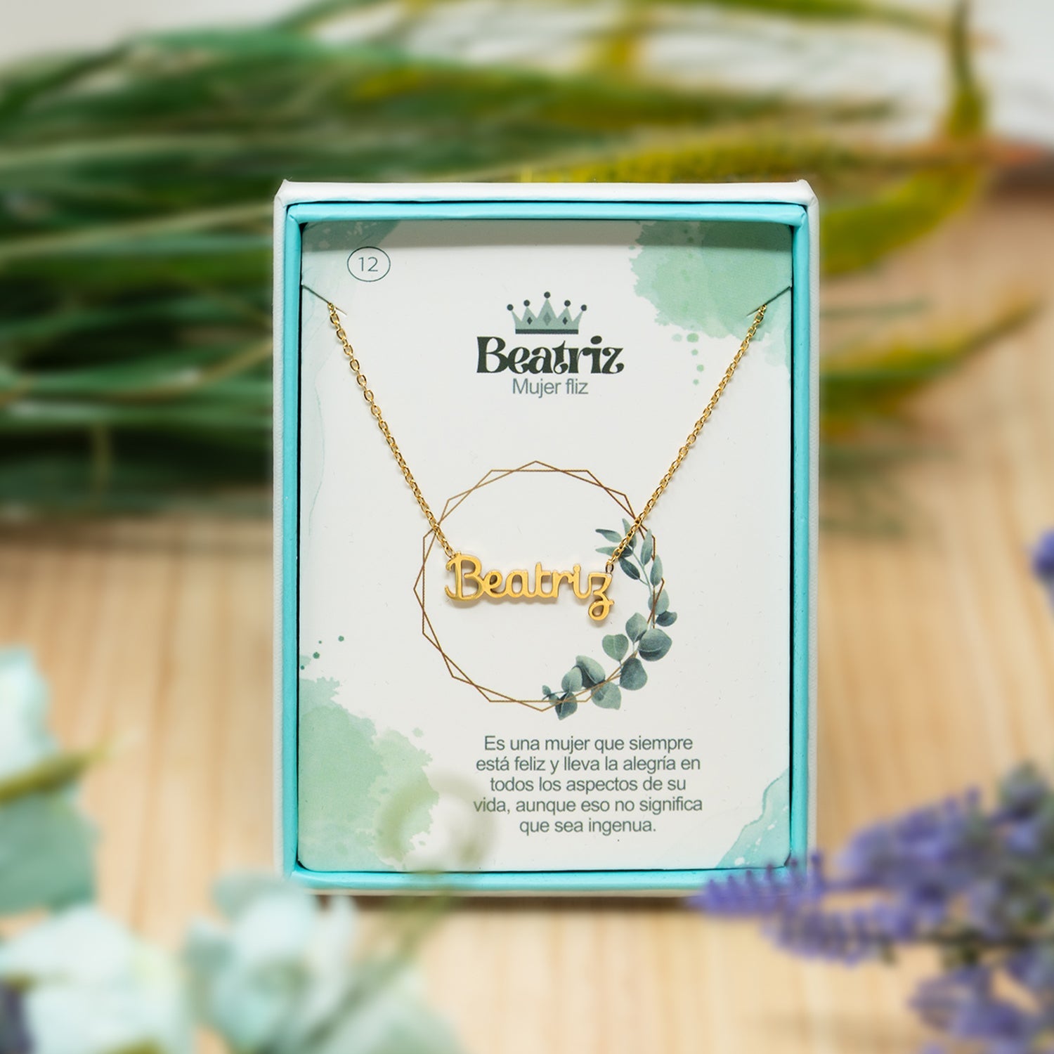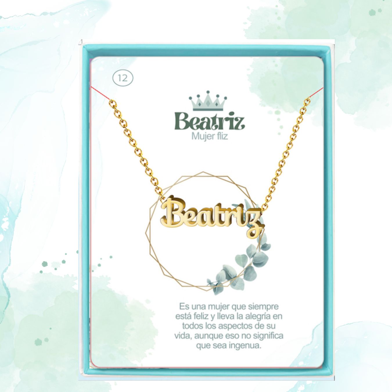 Inspirado en la belleza de los nombres femeninos en español, cada collar es una pieza única que refleja la personalidad y el encanto de quien lo lleva.