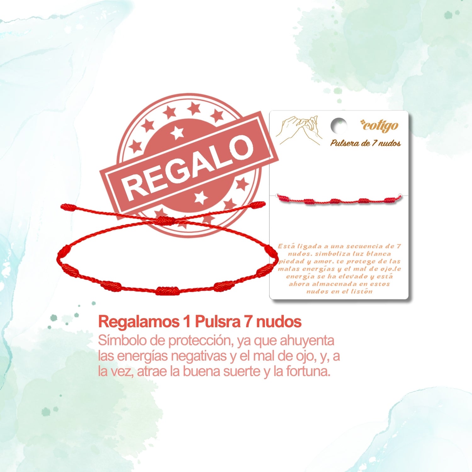 Como detalle especial, añadimos una pulsera de 7 nudos, símbolo de protección y buena suerte, para completar un obsequio lleno de significado.