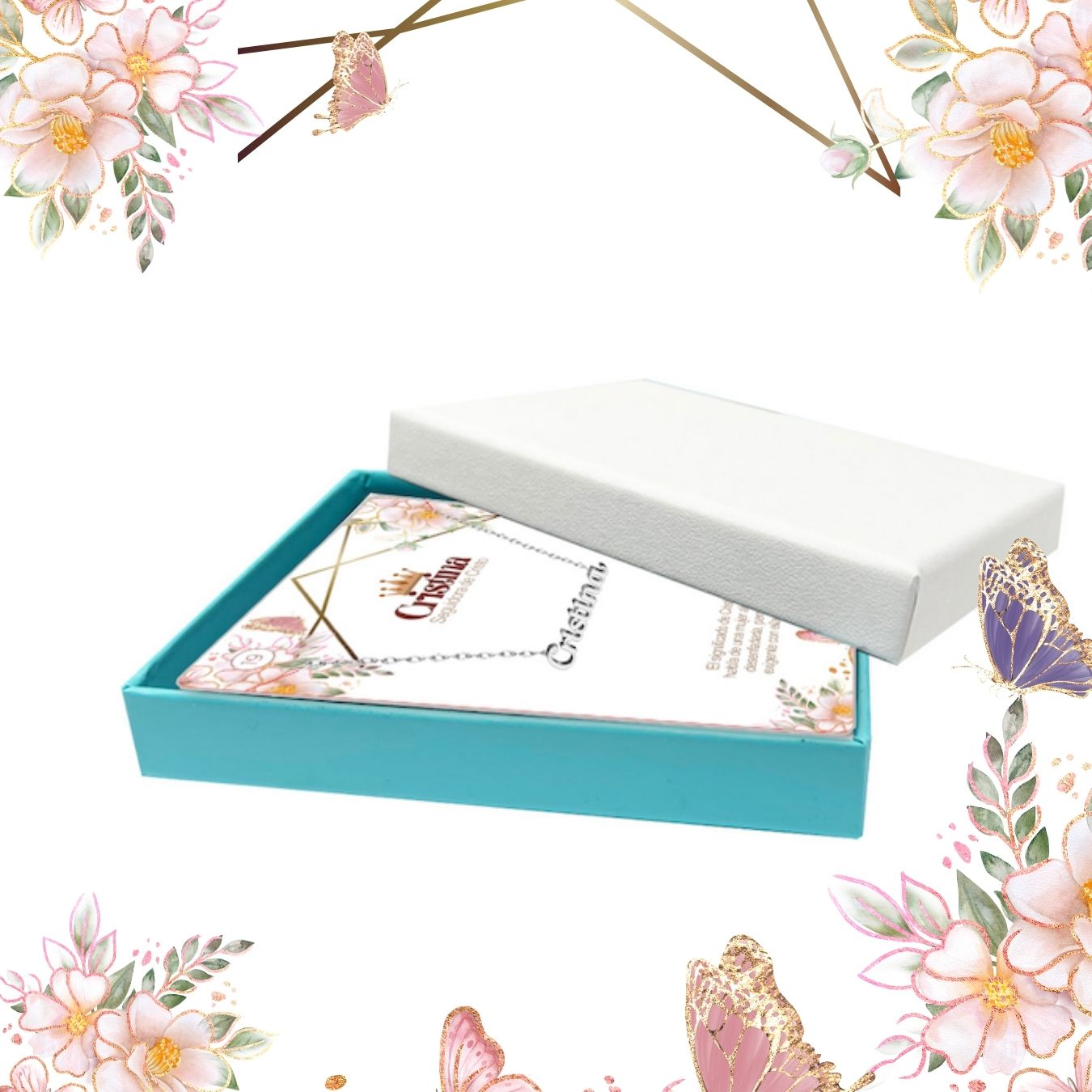 Incluye una tarjeta elegante con el significado especial de cada nombre, añadiendo un toque emocional y cultural a este regalo.