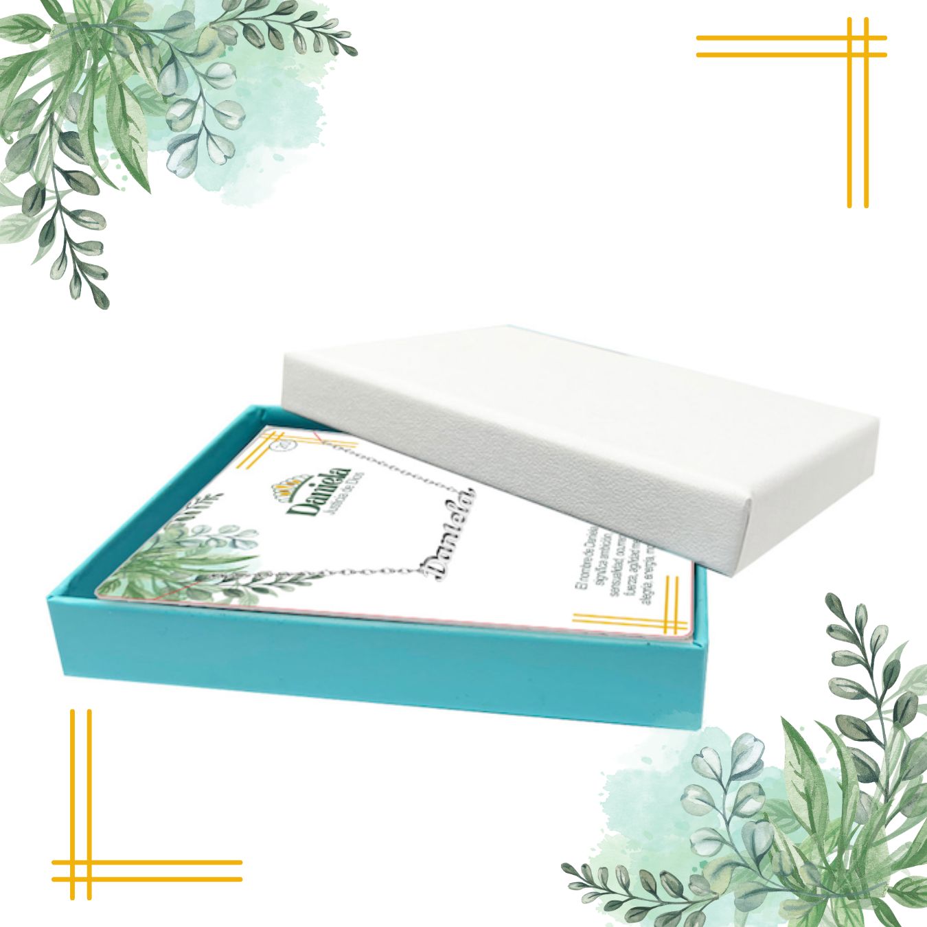 Incluye una tarjeta elegante con el significado especial de cada nombre, añadiendo un toque emocional y cultural a este regalo.