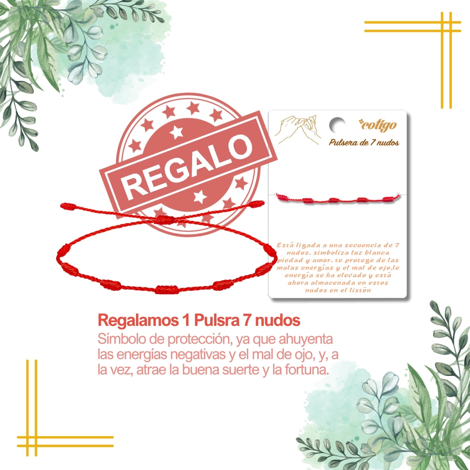 Como detalle especial, añadimos una pulsera de 7 nudos, símbolo de protección y buena suerte, para completar un obsequio lleno de significado.