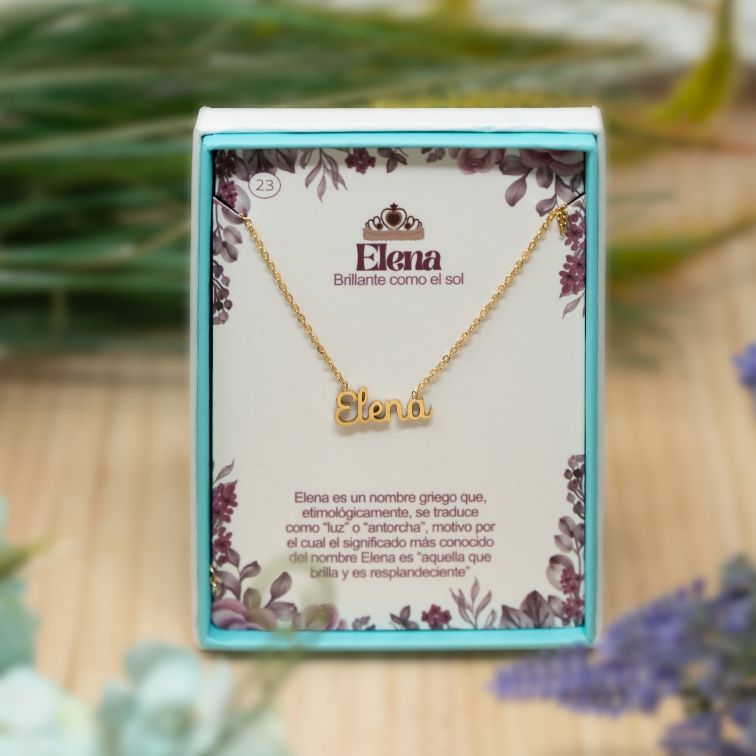 Inspirado en la belleza de los nombres femeninos en español, cada collar es una pieza única que refleja la personalidad y el encanto de quien lo lleva.