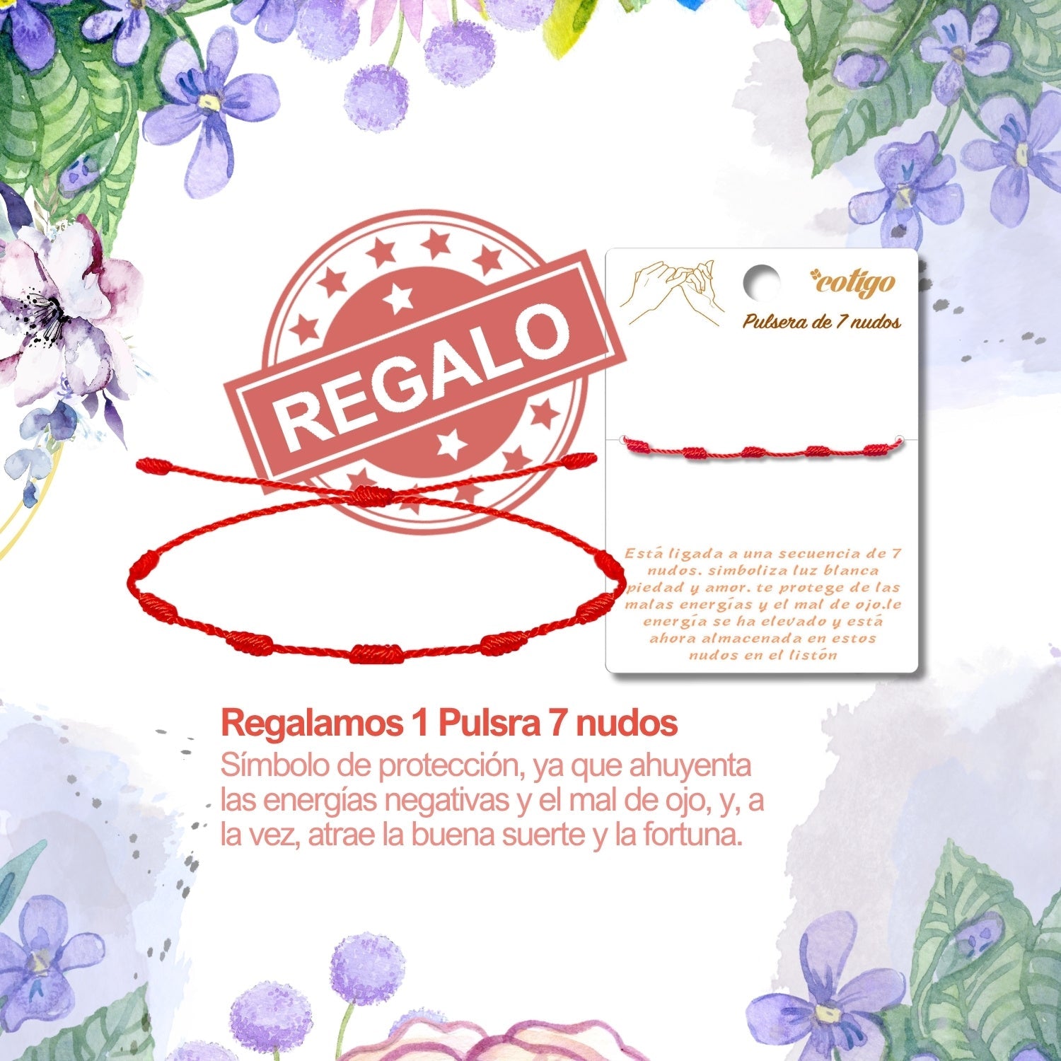 Como detalle especial, añadimos una pulsera de 7 nudos, símbolo de protección y buena suerte, para completar un obsequio lleno de significado.