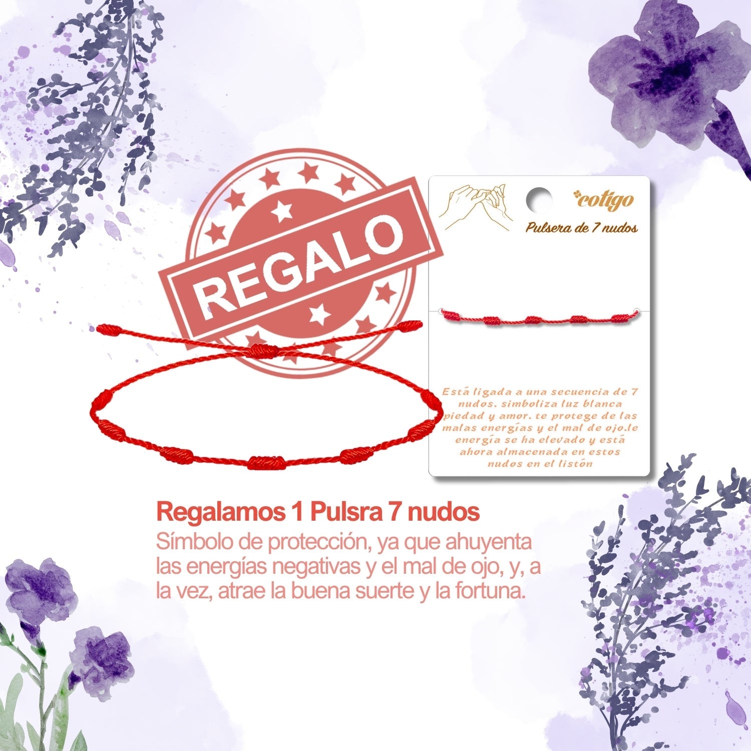 Como detalle especial, añadimos una pulsera de 7 nudos, símbolo de protección y buena suerte, para completar un obsequio lleno de significado.