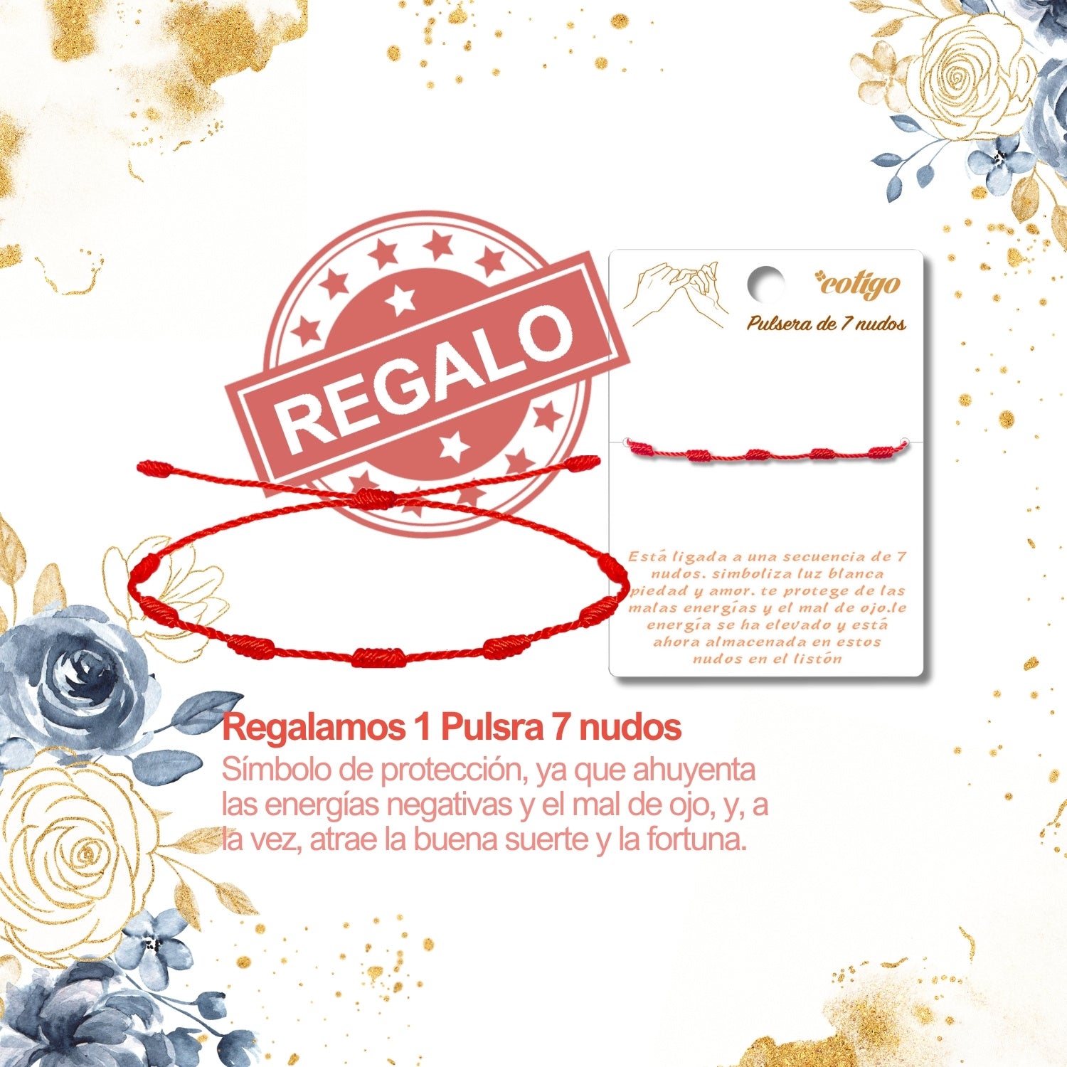 Como detalle especial, añadimos una pulsera de 7 nudos, símbolo de protección y buena suerte, para completar un obsequio lleno de significado.