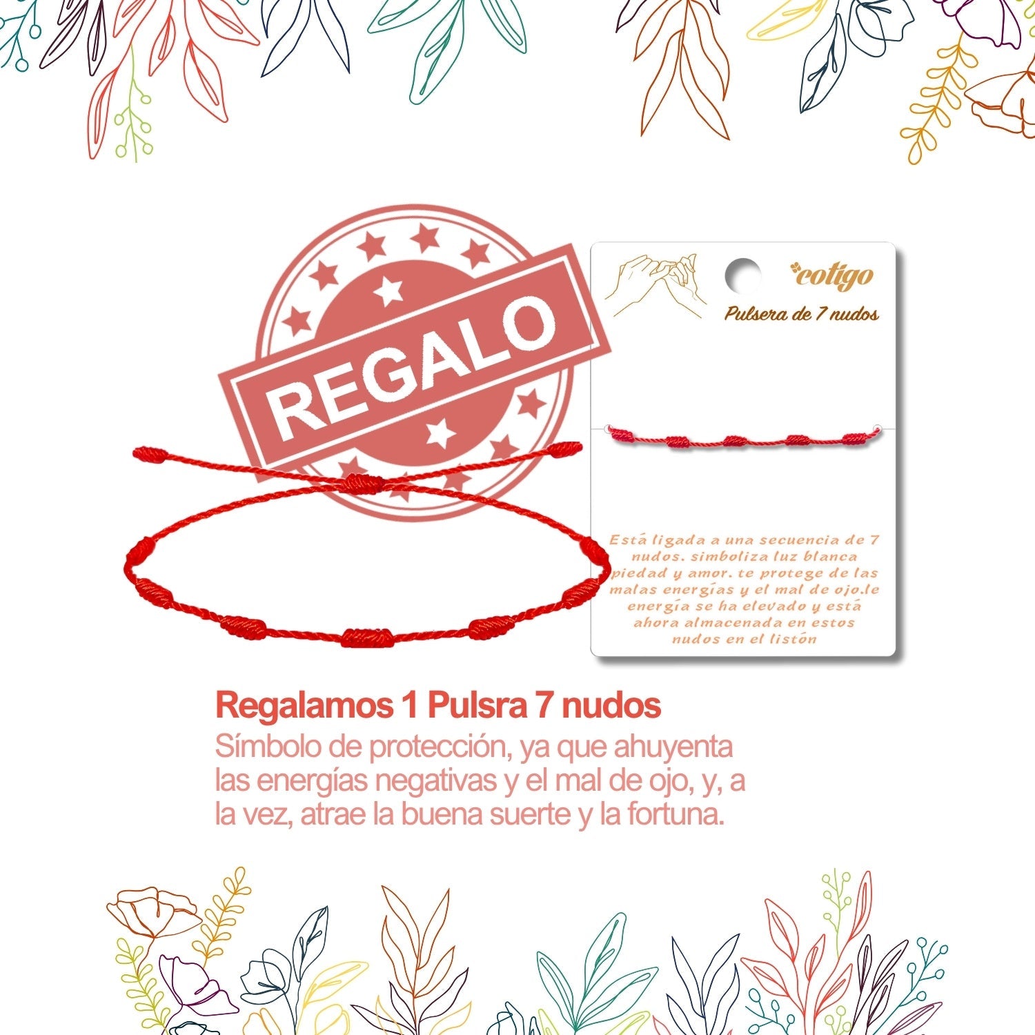 Como detalle especial, añadimos una pulsera de 7 nudos, símbolo de protección y buena suerte, para completar un obsequio lleno de significado.