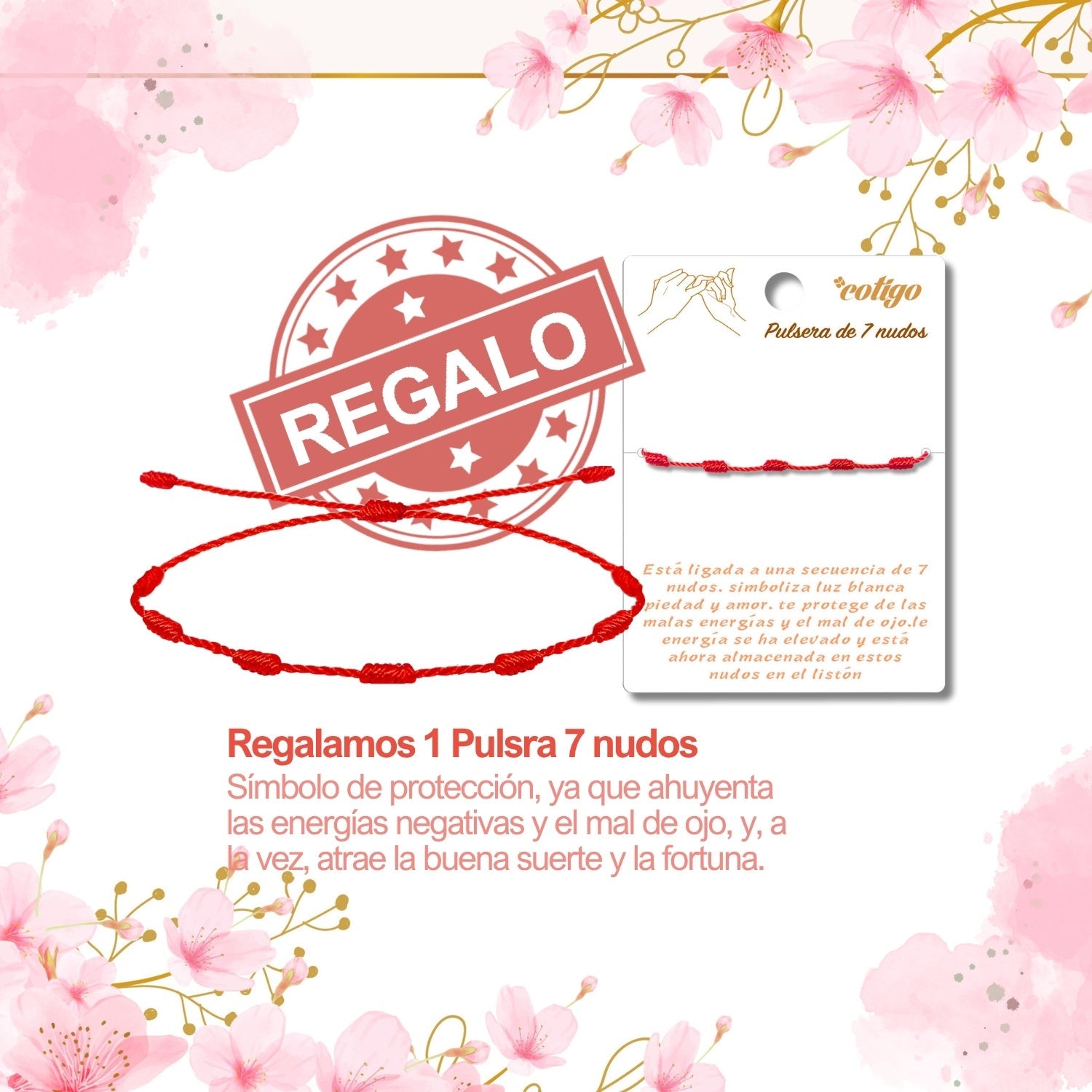 Como detalle especial, añadimos una pulsera de 7 nudos, símbolo de protección y buena suerte, para completar un obsequio lleno de significado.