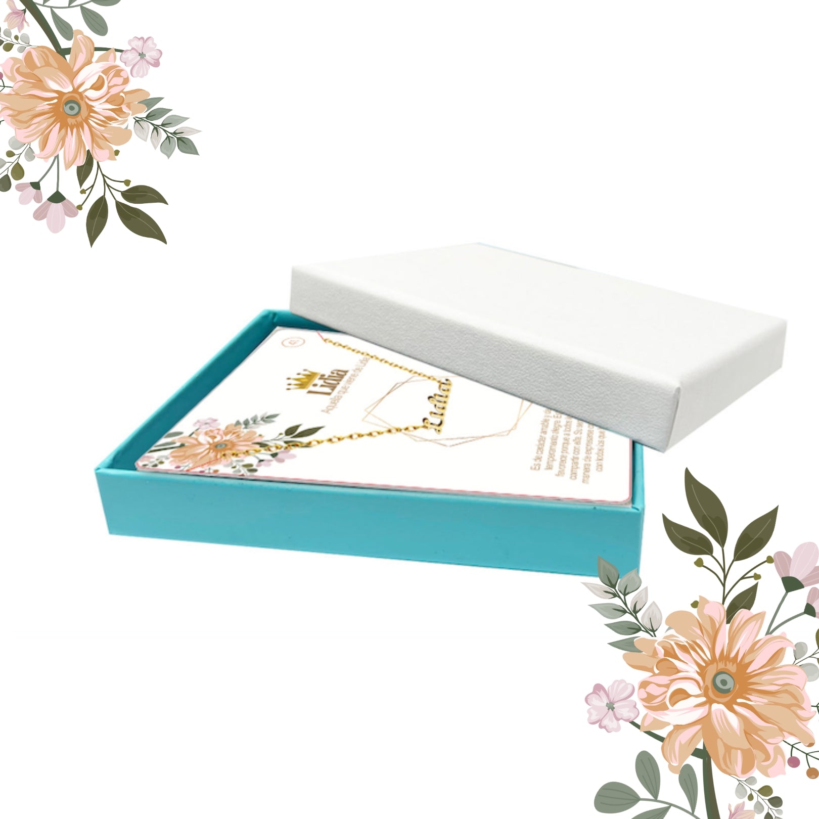 Incluye una tarjeta elegante con el significado especial de cada nombre, añadiendo un toque emocional y cultural a este regalo.