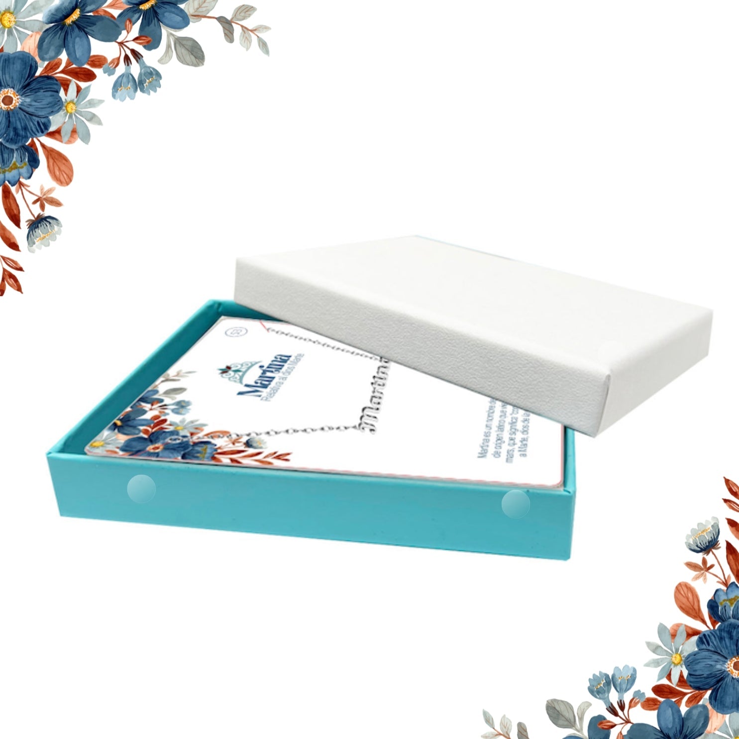 Incluye una tarjeta elegante con el significado especial de cada nombre, añadiendo un toque emocional y cultural a este regalo.