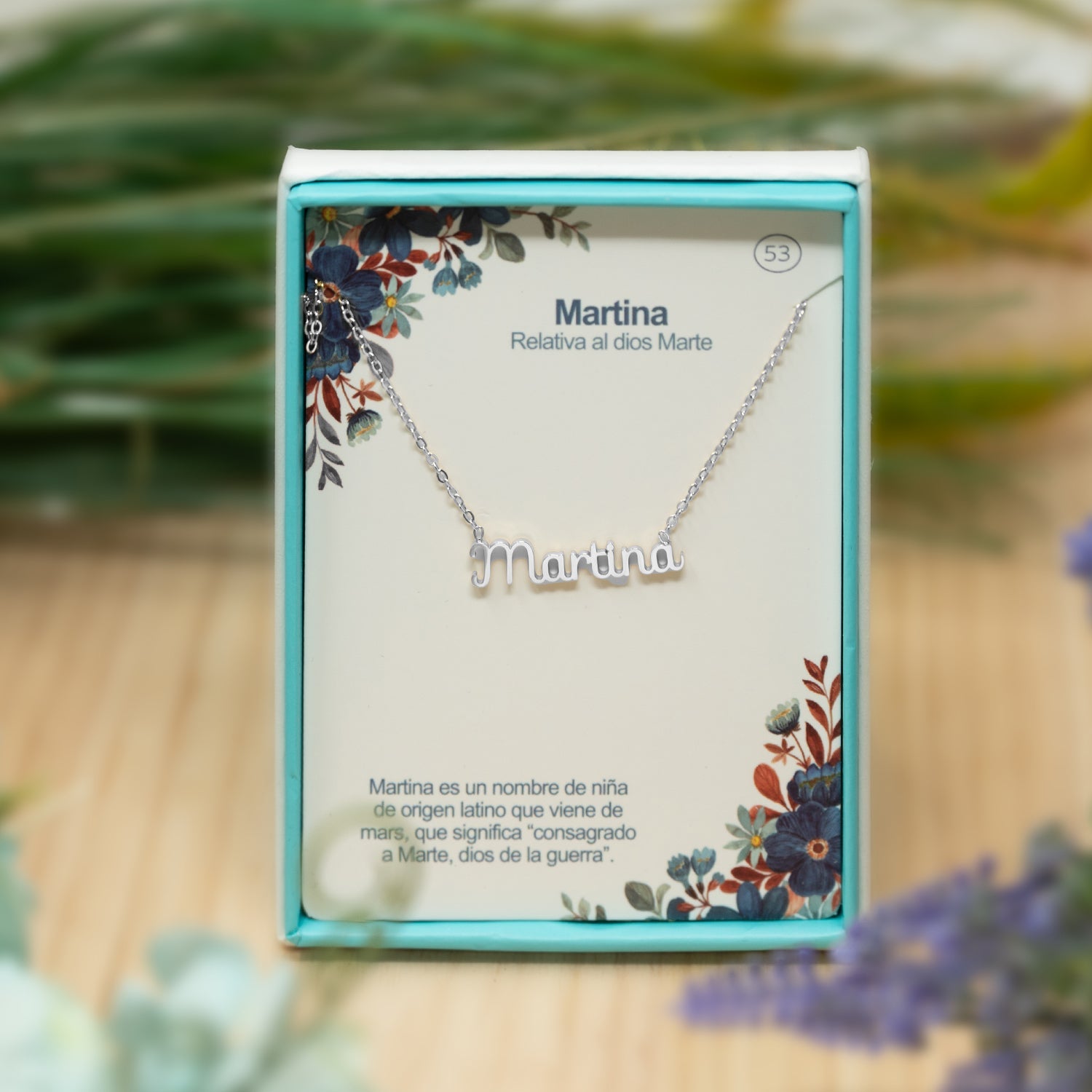 Inspirado en la belleza de los nombres femeninos en español, cada collar es una pieza única que refleja la personalidad y el encanto de quien lo lleva.