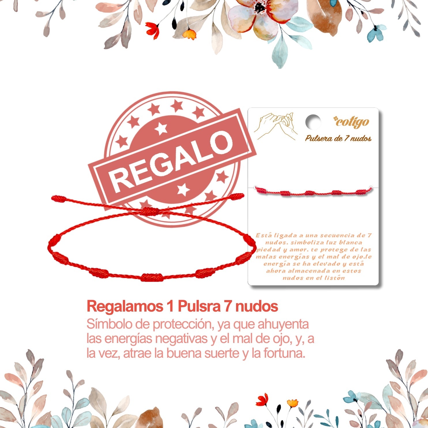Como detalle especial, añadimos una pulsera de 7 nudos, símbolo de protección y buena suerte, para completar un obsequio lleno de significado.
