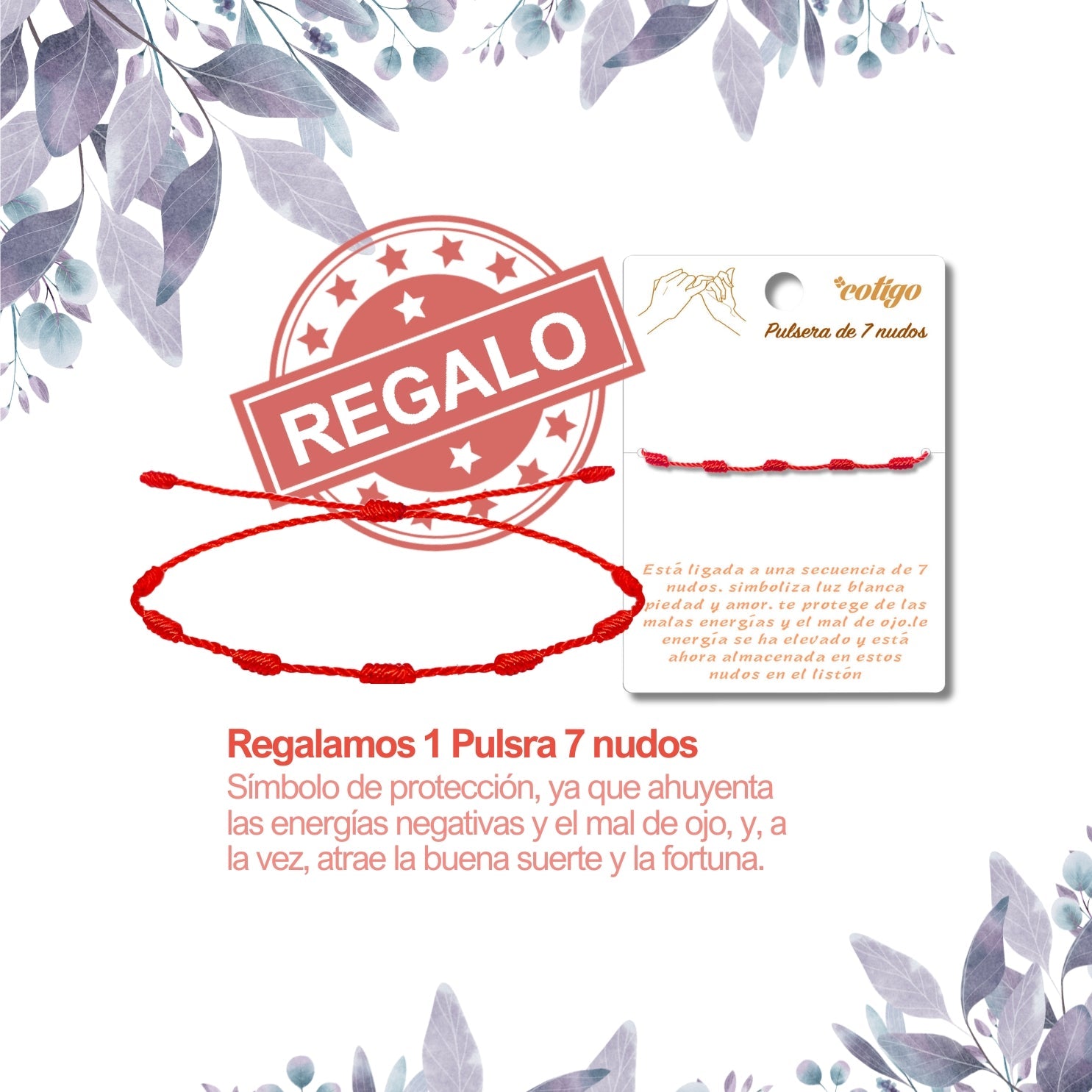 Como detalle especial, añadimos una pulsera de 7 nudos, símbolo de protección y buena suerte, para completar un obsequio lleno de significado.