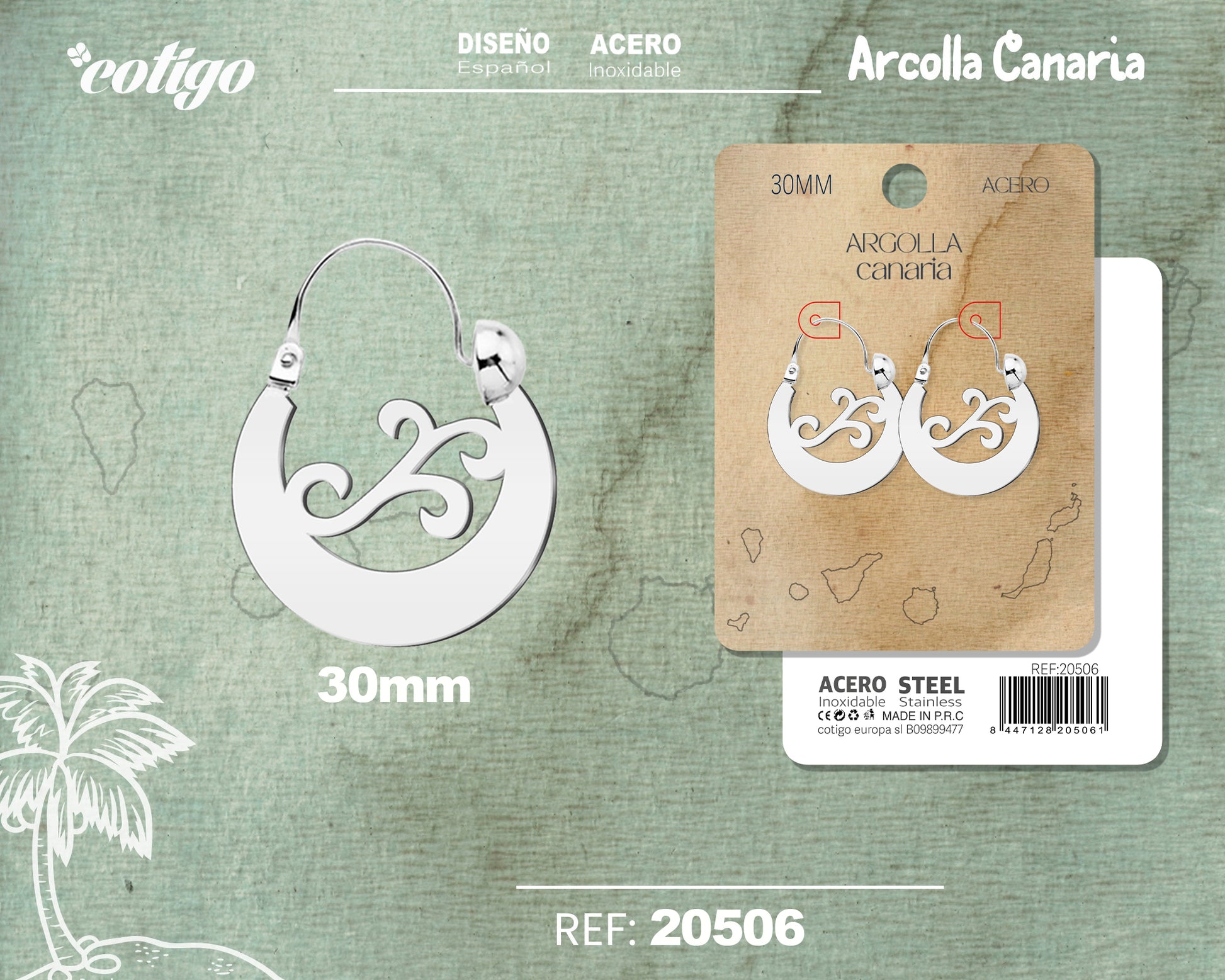 20506 Argolla canaria 30mm Acero color Plateado