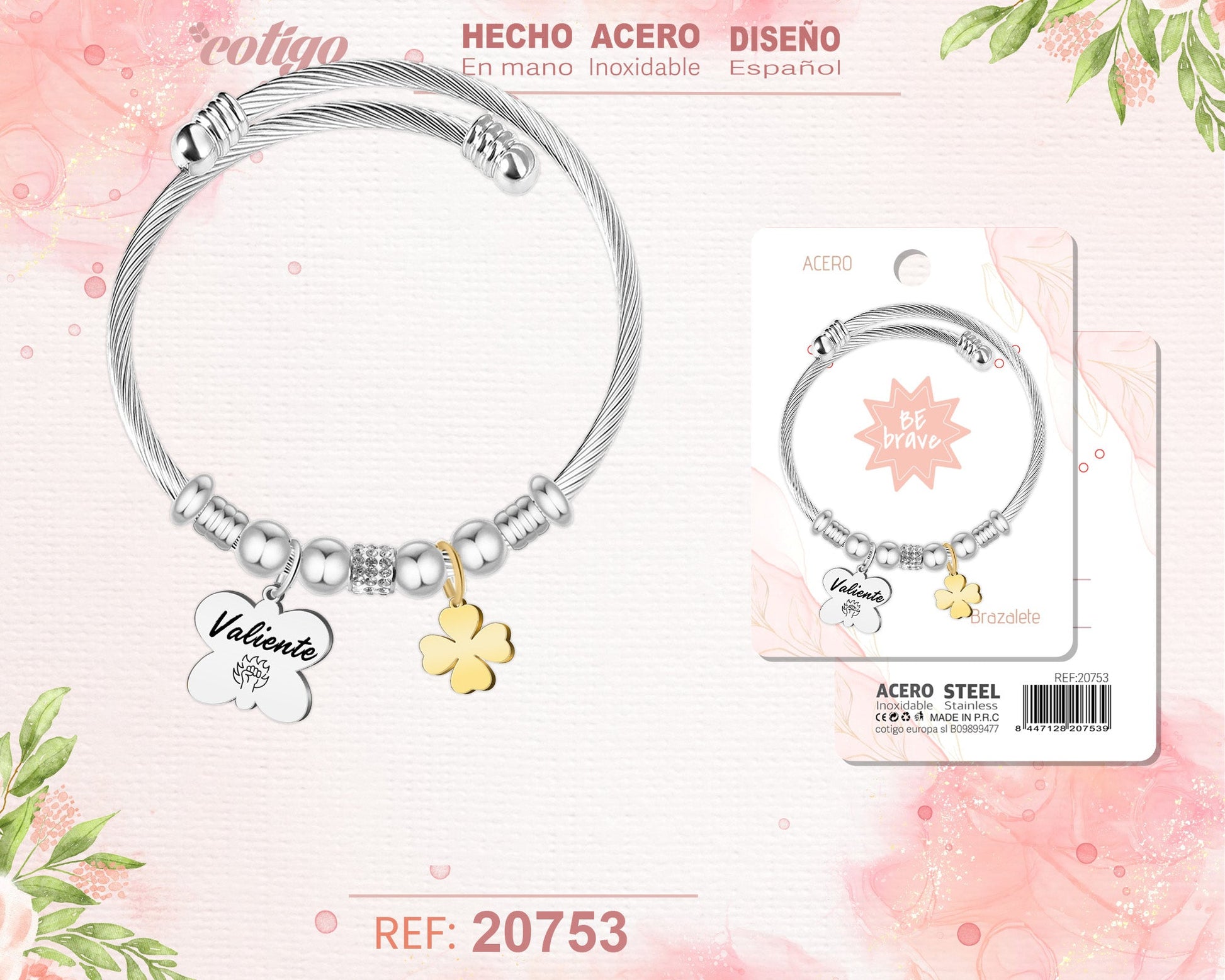 Brazalete Acero con palabra: Valiente