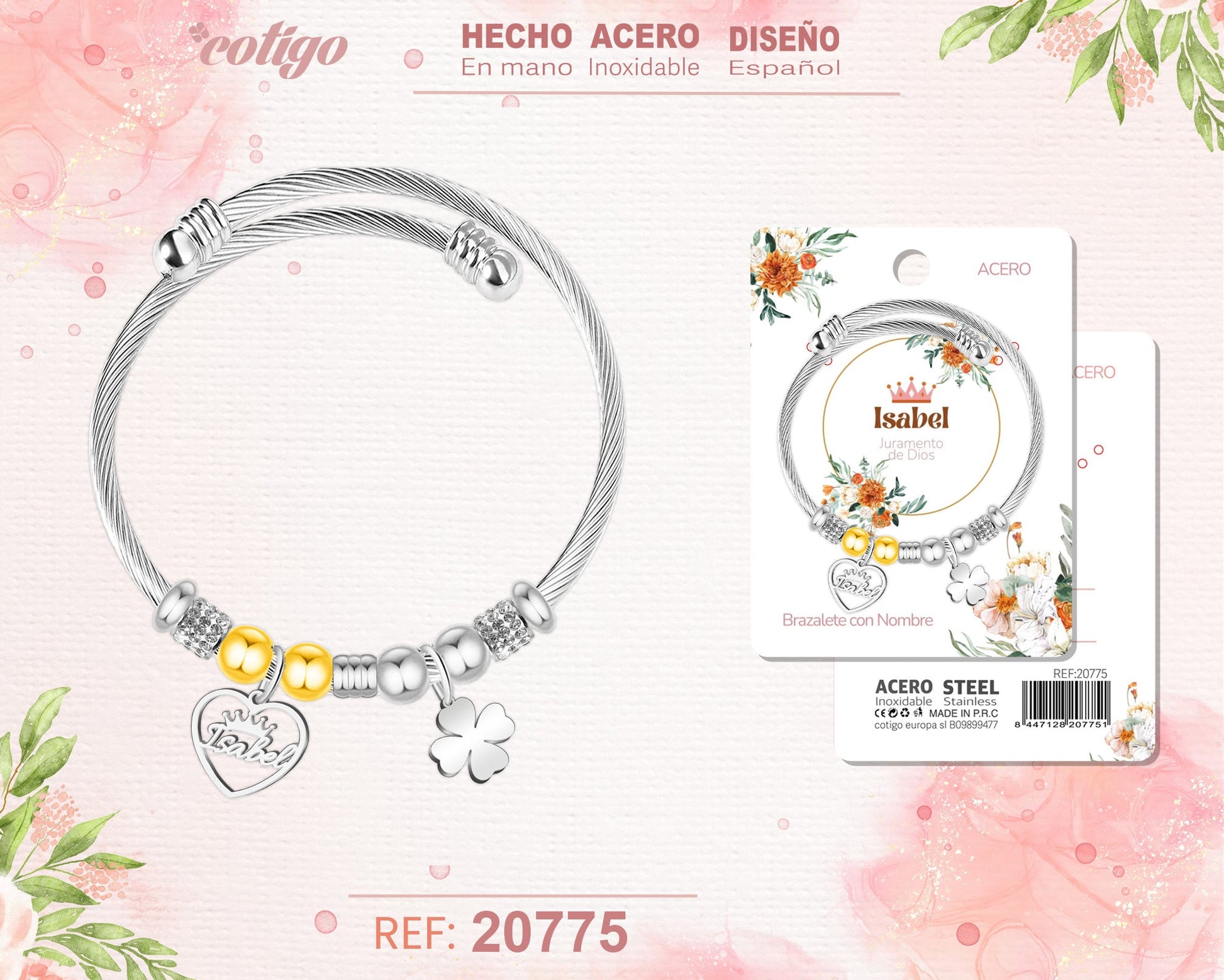 Brazalerte Acero con Nombre:Isabel