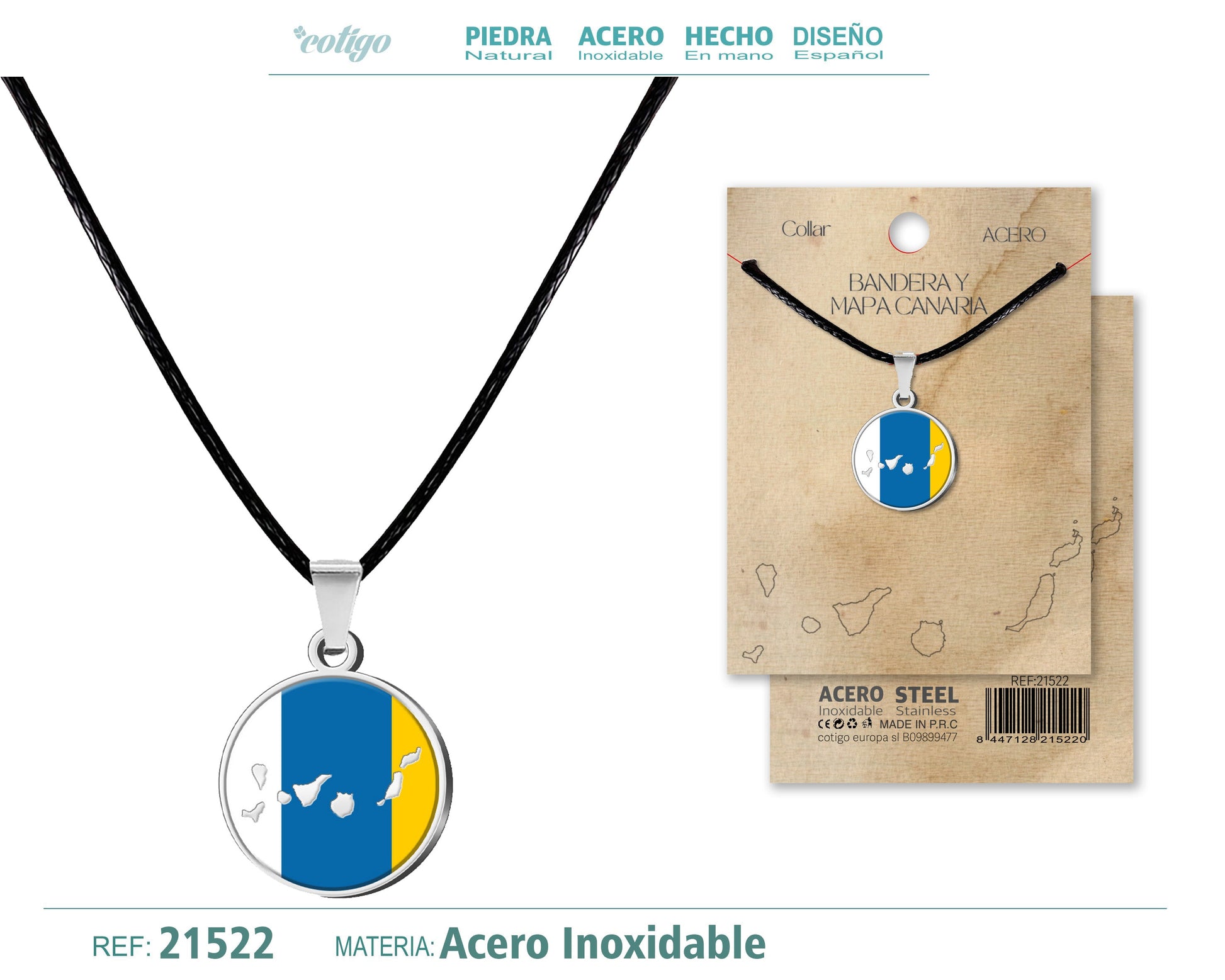 Colgante Mapa y Bandera Canaria Acero Plateado