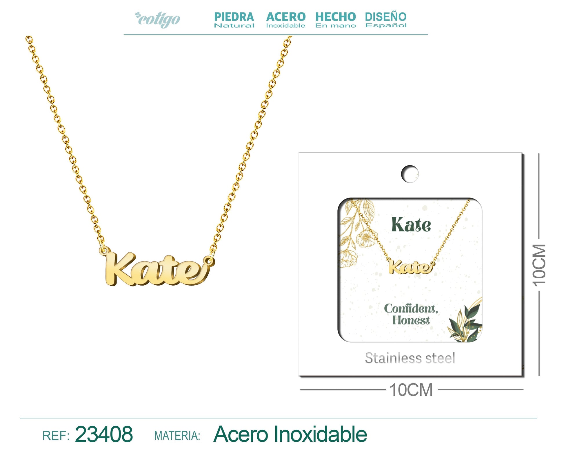 Collar Nombre Ingles Kate Acero con Sobre