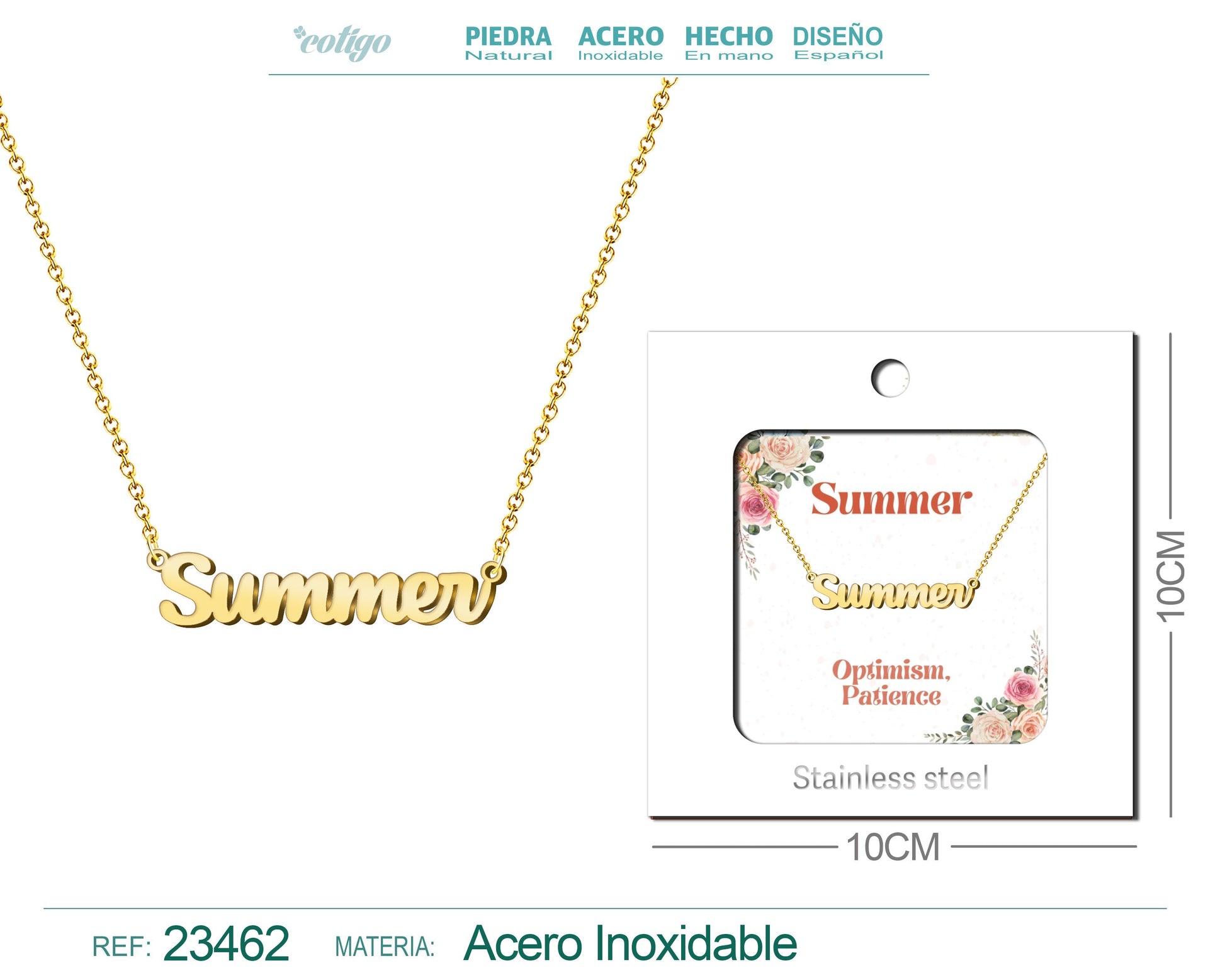 Collar Nombre Ingles Summer Acero con Sobre