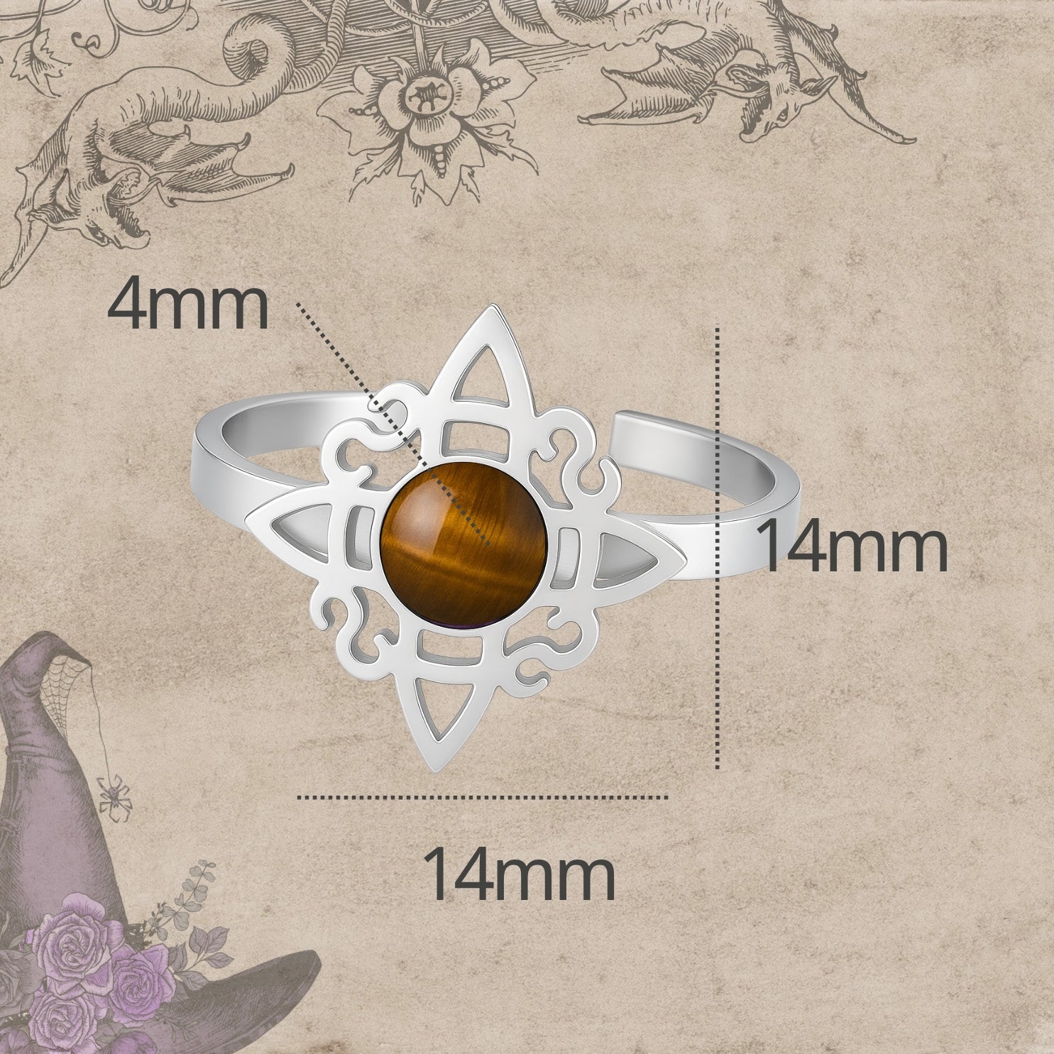 Anillo Nudo de Bruja Acero Plateado con Ojo de Tigre