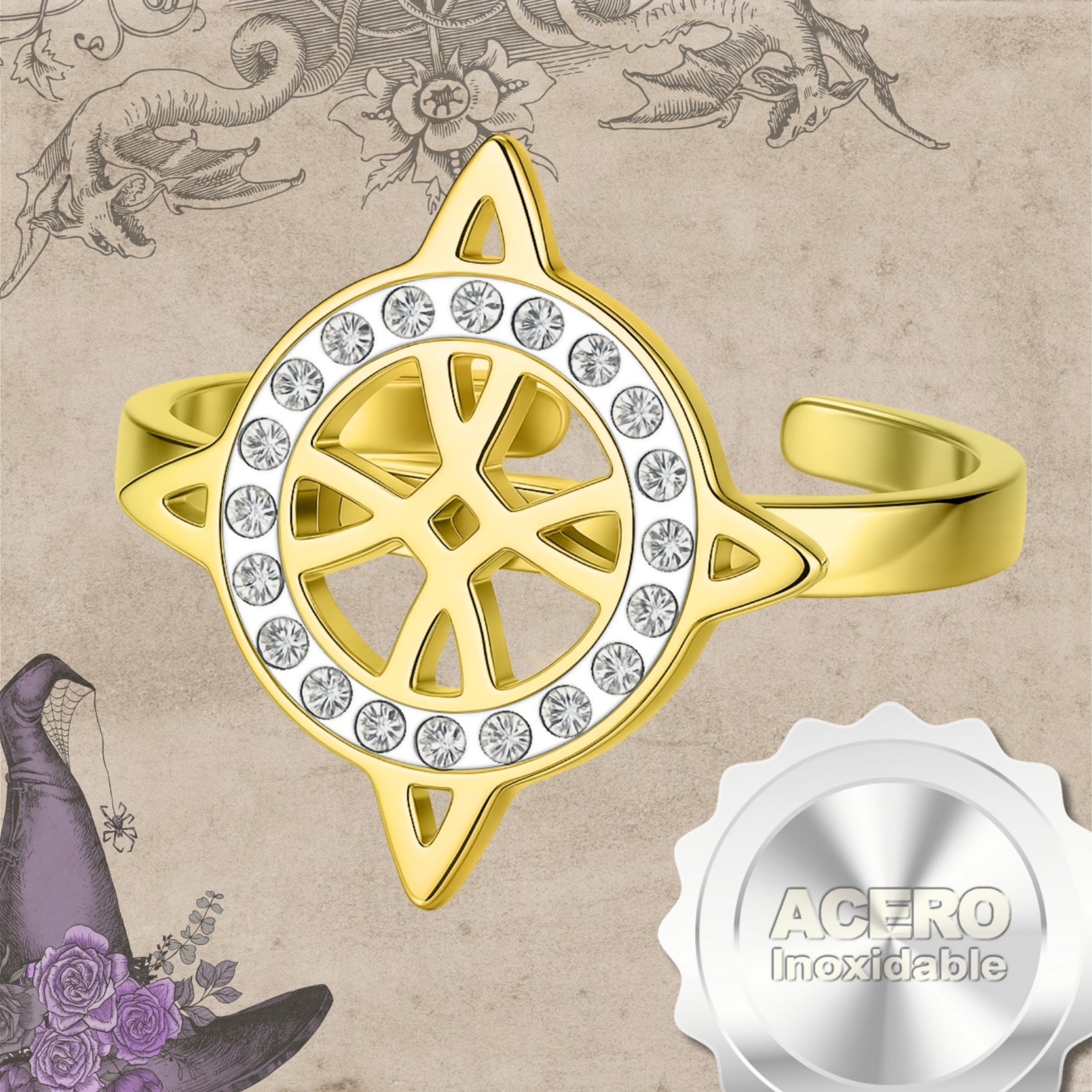Anillo Nudo de Bruja – Acero Inoxidable Dorado, Amuleto de Protección con Caja de Regalo