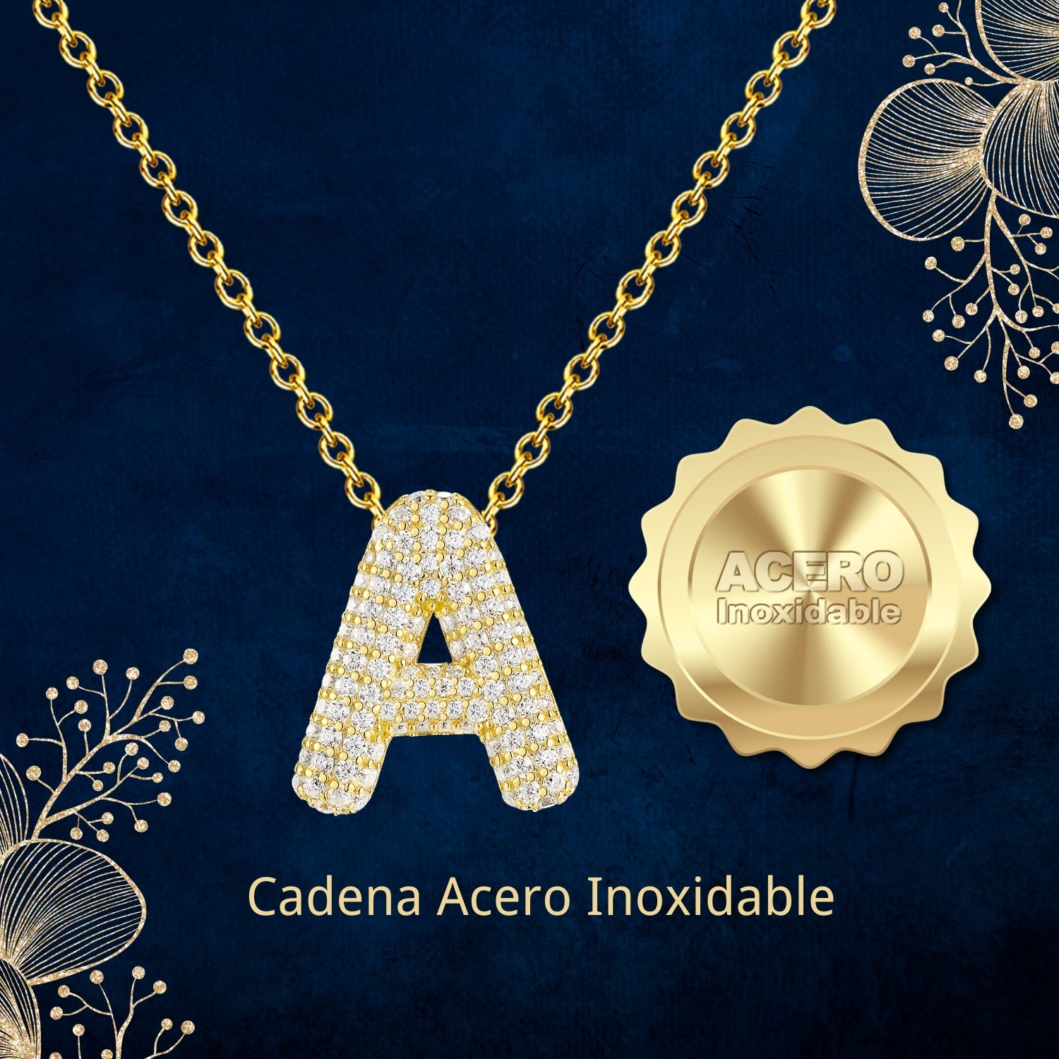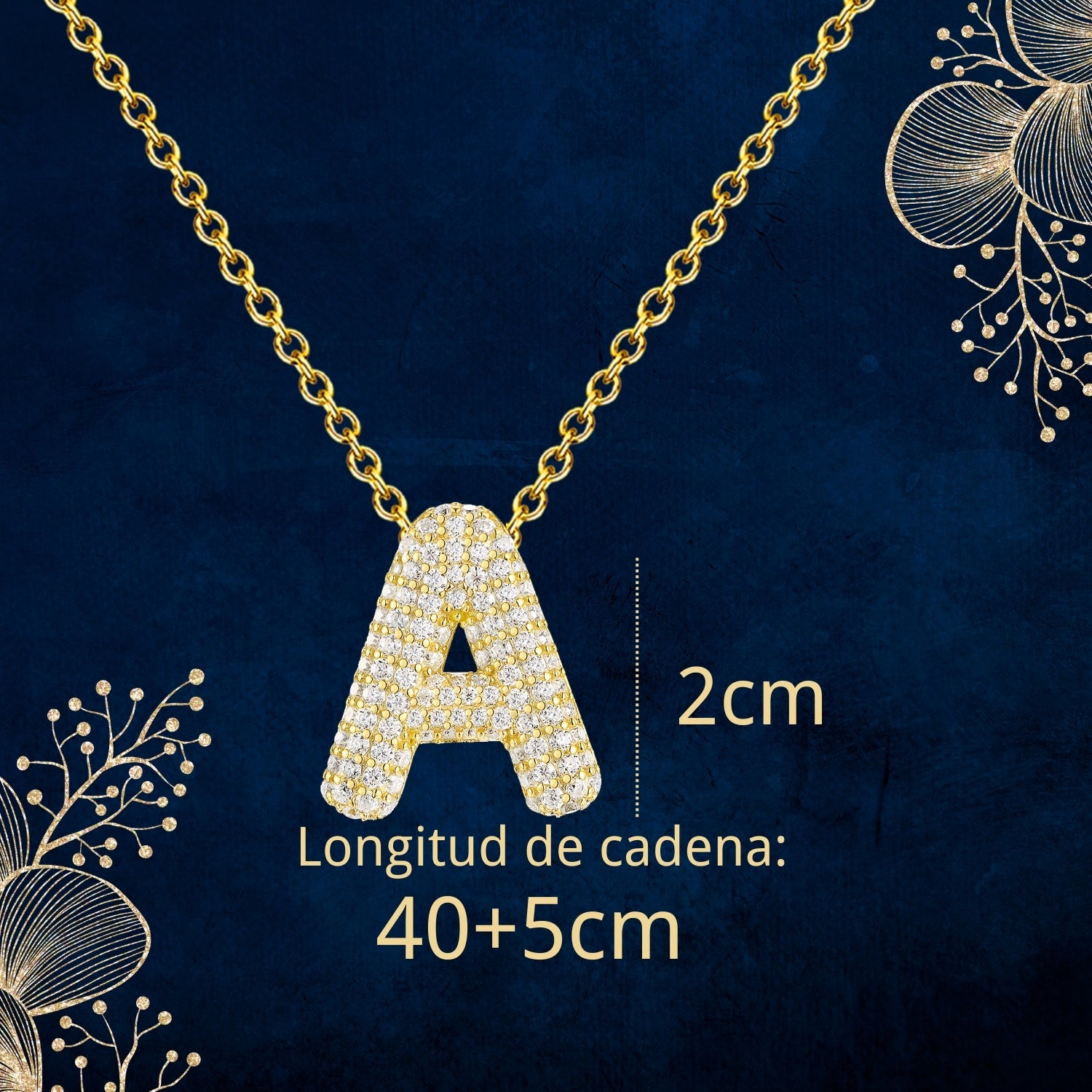 ✨ Collar Letra Inicial con Circonitas – Colgante elegante con diseño de letra inicial, adornado con brillantes piedras circonitas que aportan luz y estilo único.