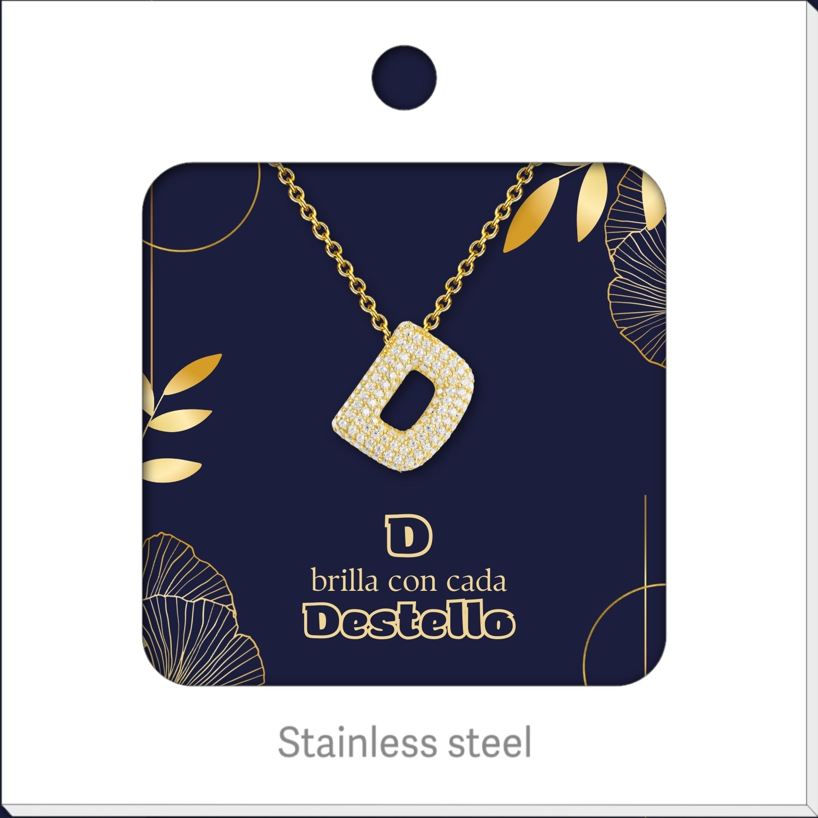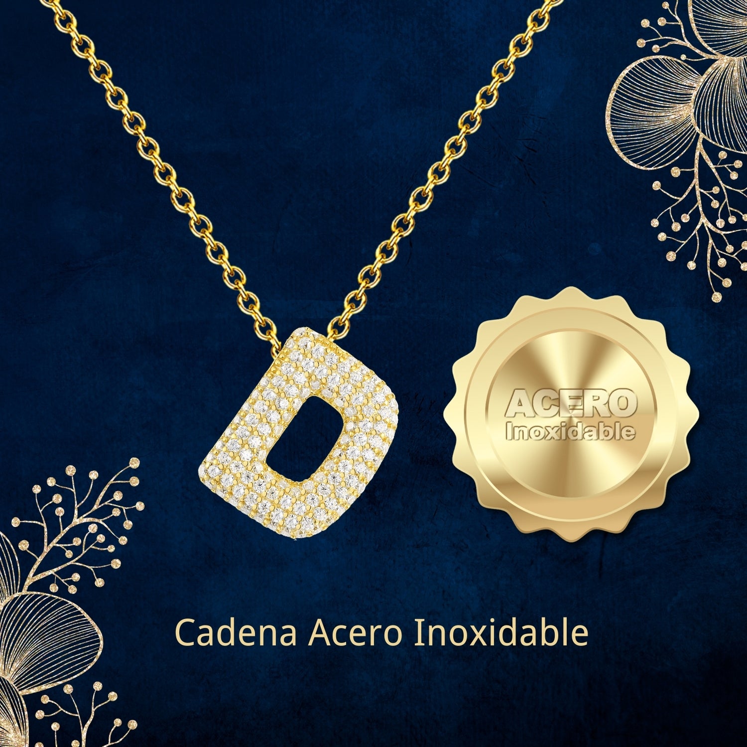 ✨ Collar Letra Inicial con Circonitas – Colgante elegante con diseño de letra inicial, adornado con brillantes piedras circonitas que aportan luz y estilo único.