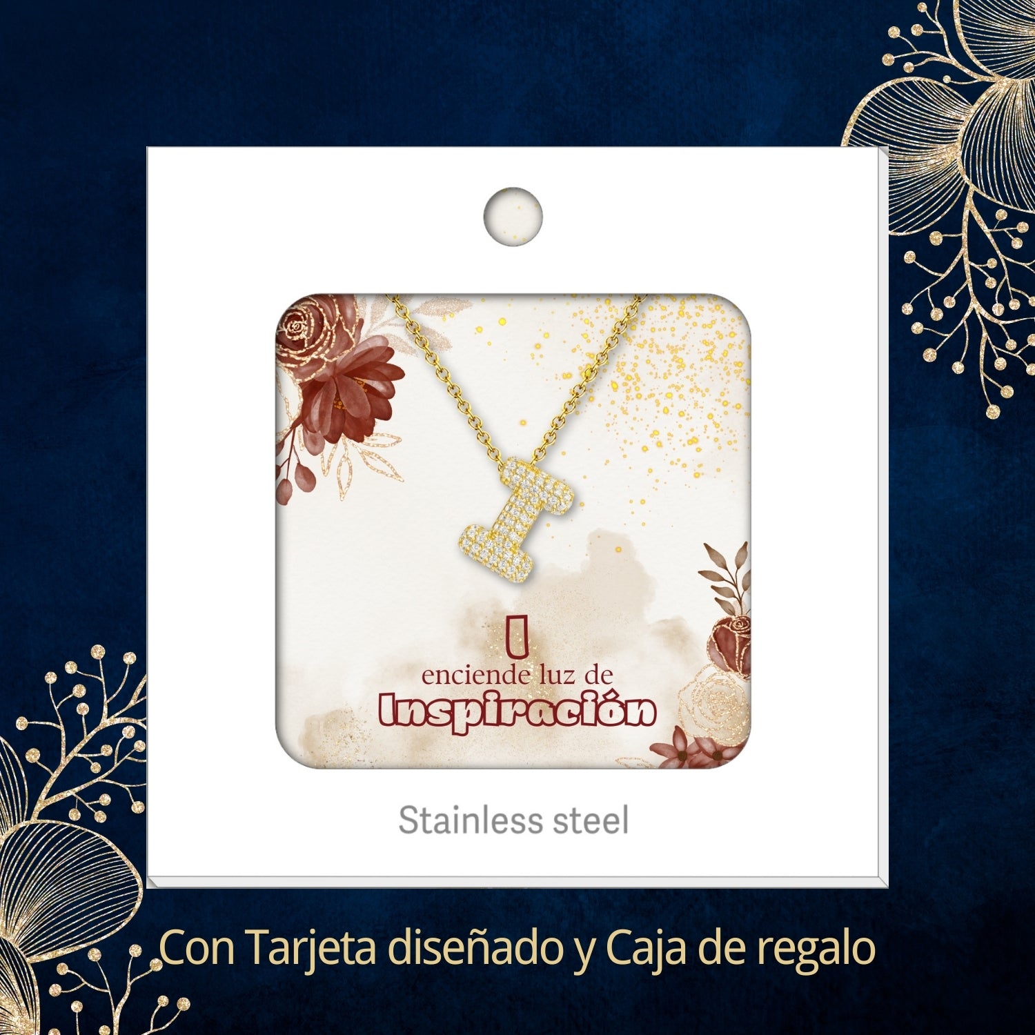 ✨ Collar Letra Inicial con Circonitas – Colgante elegante con diseño de letra inicial, adornado con brillantes piedras circonitas que aportan luz y estilo único.