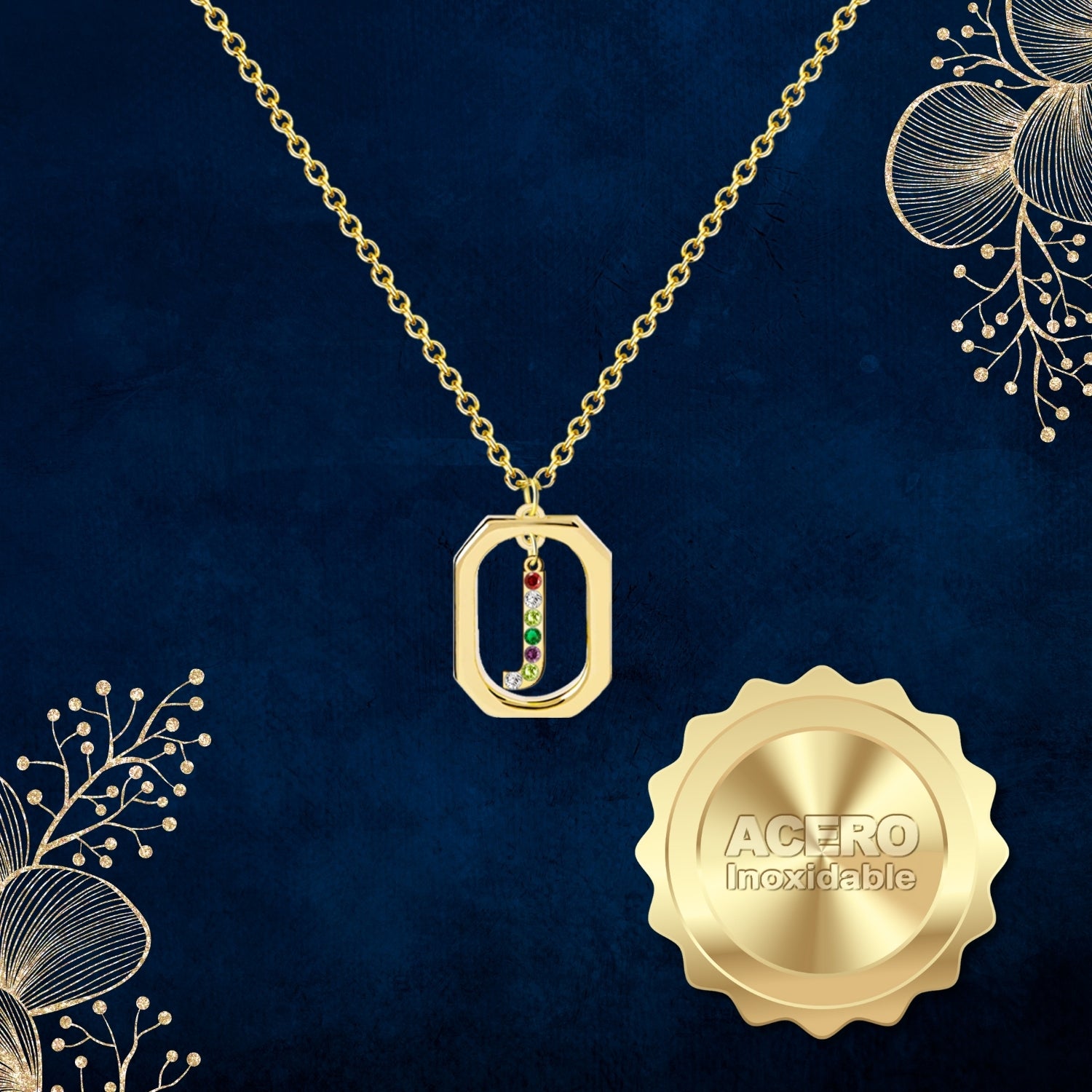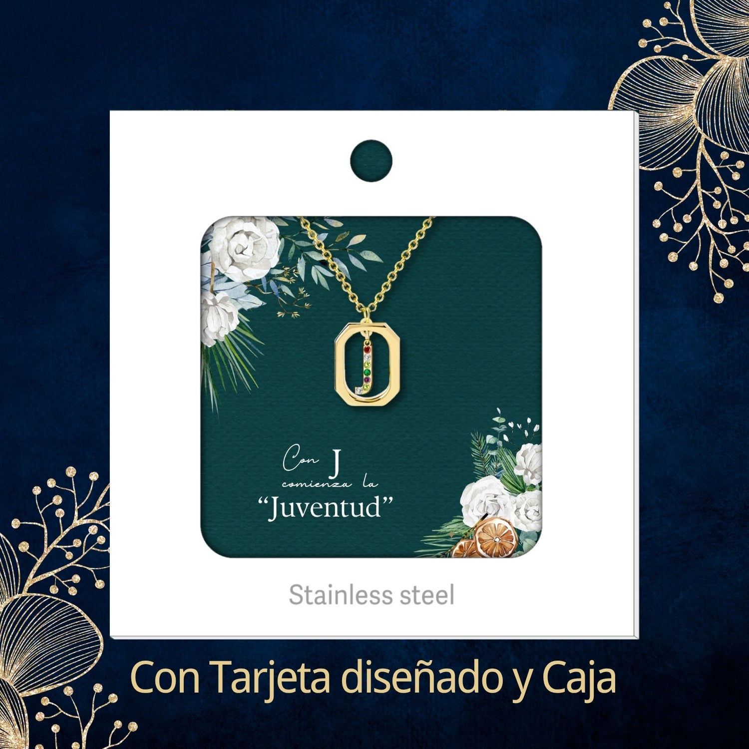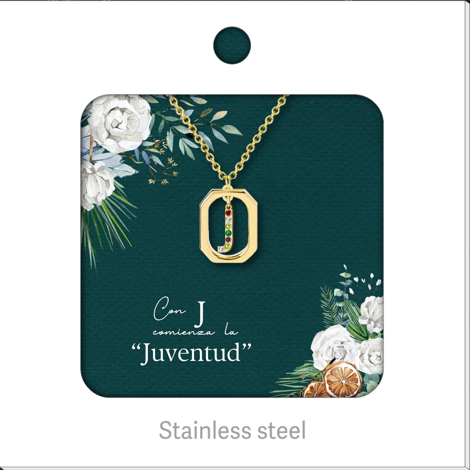 Colgante Letra Inicial J Acero con Circonita color Dorado