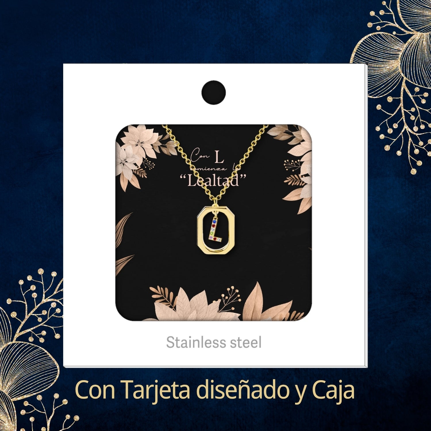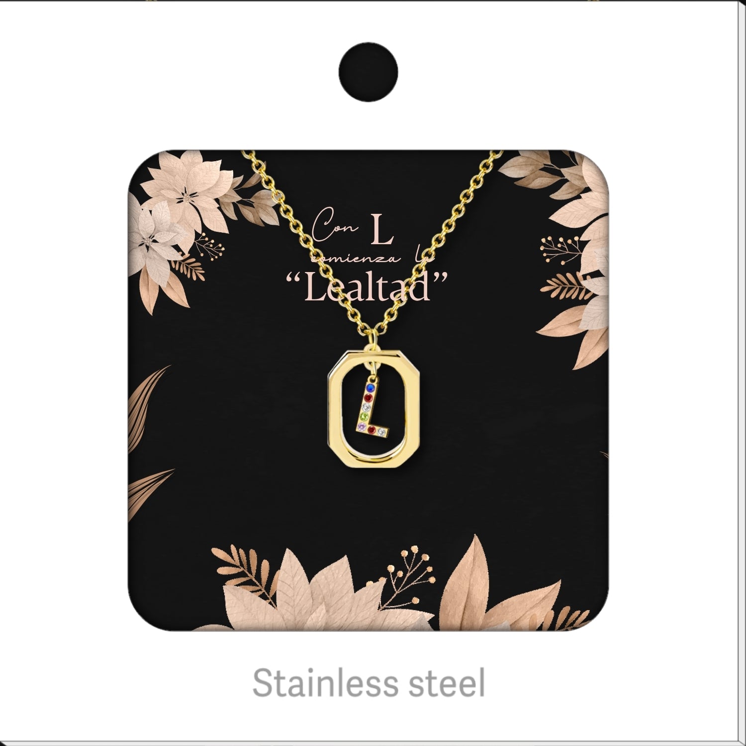 Colgante Letra Inicial L Acero con Circonita color Dorado