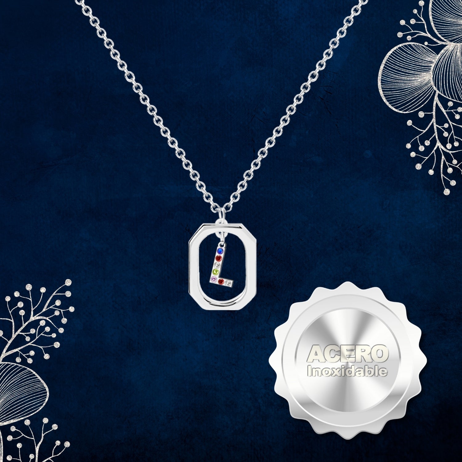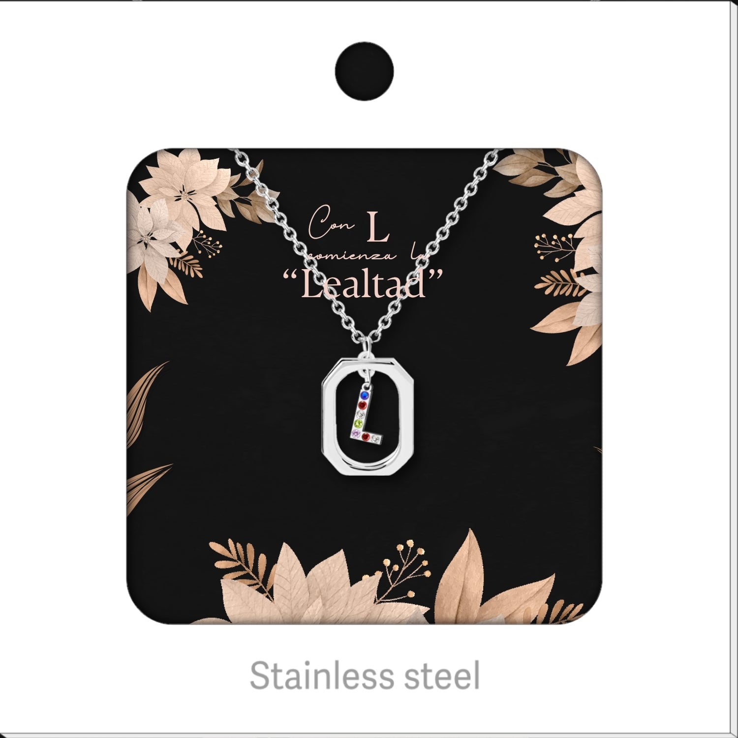 Colgante Letra Inicial L Acero con Circonita color Plateado