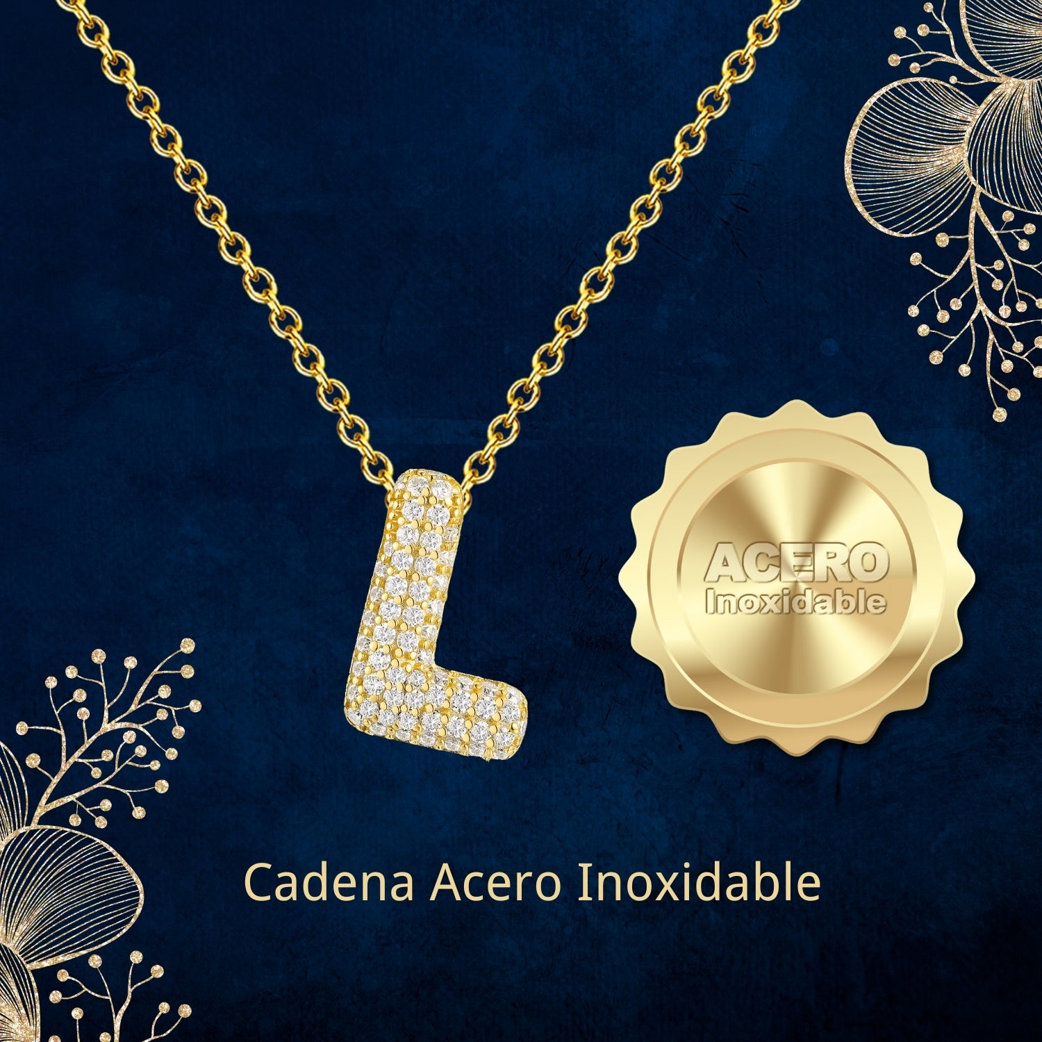 ✨ Collar Letra Inicial con Circonitas – Colgante elegante con diseño de letra inicial, adornado con brillantes piedras circonitas que aportan luz y estilo único.