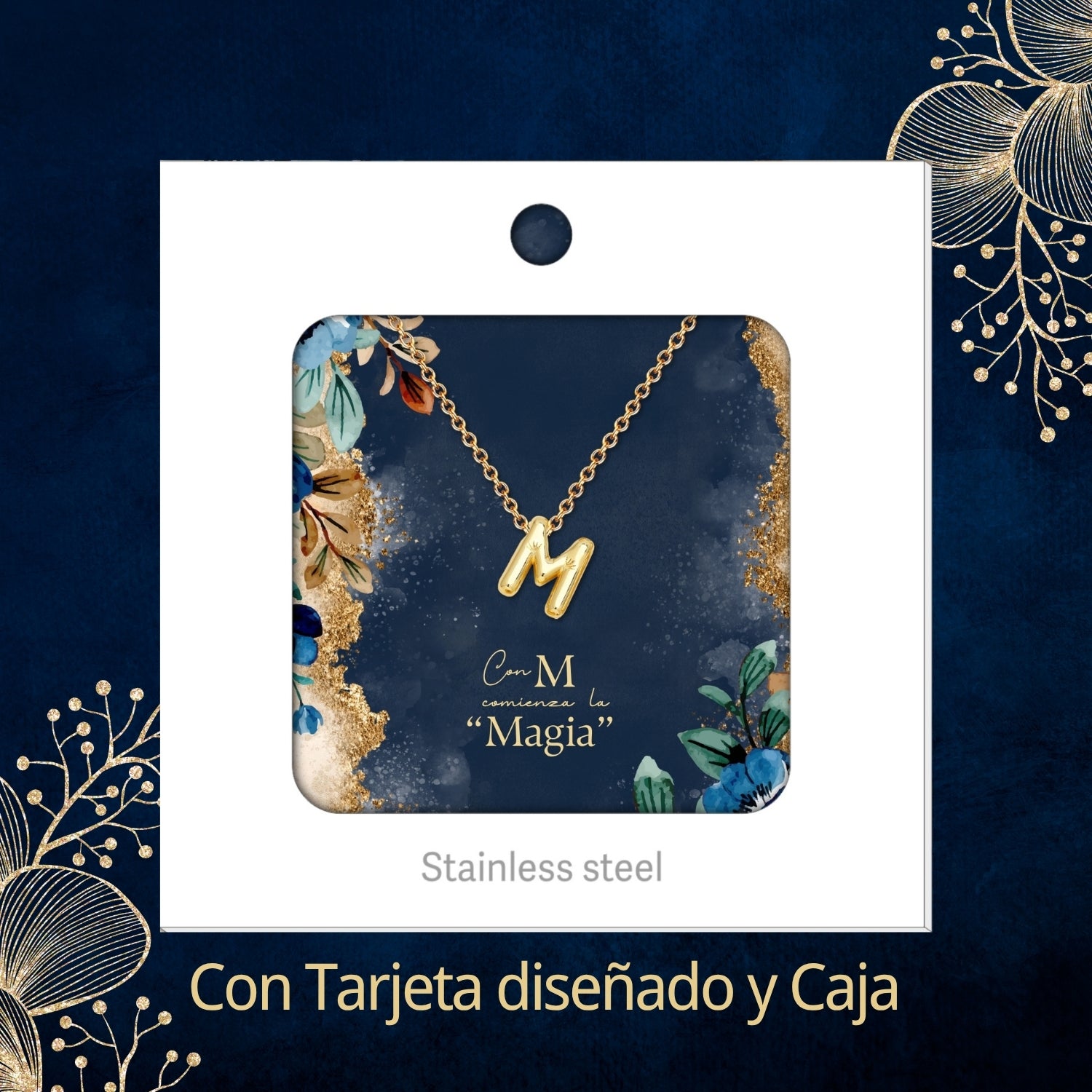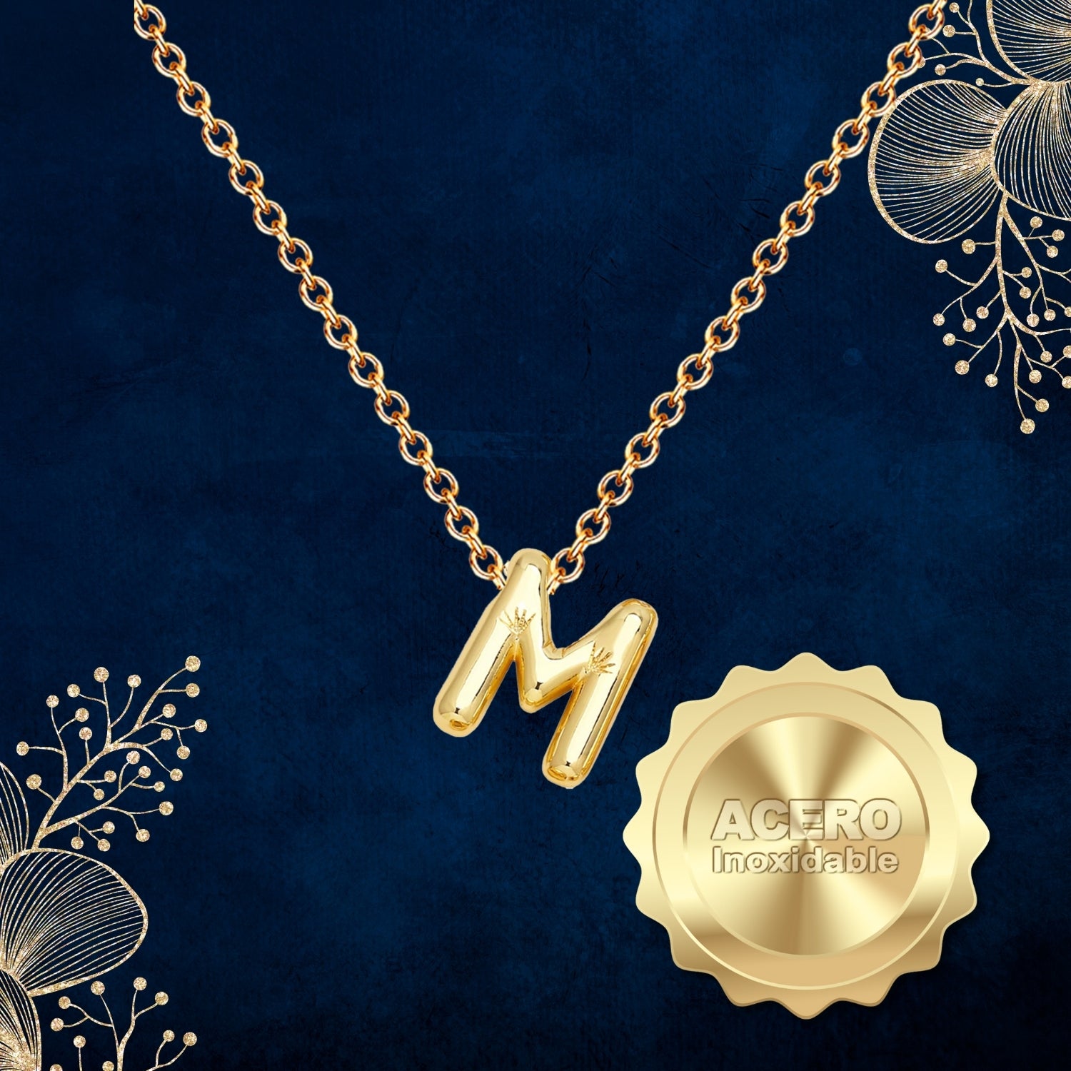Colgante Letra Inicial M Acero color Dorado